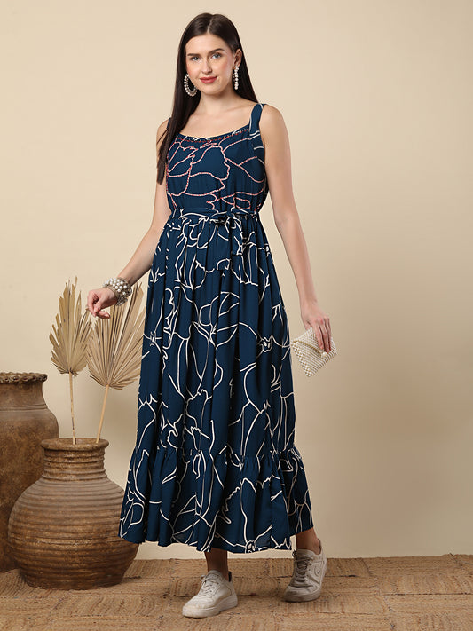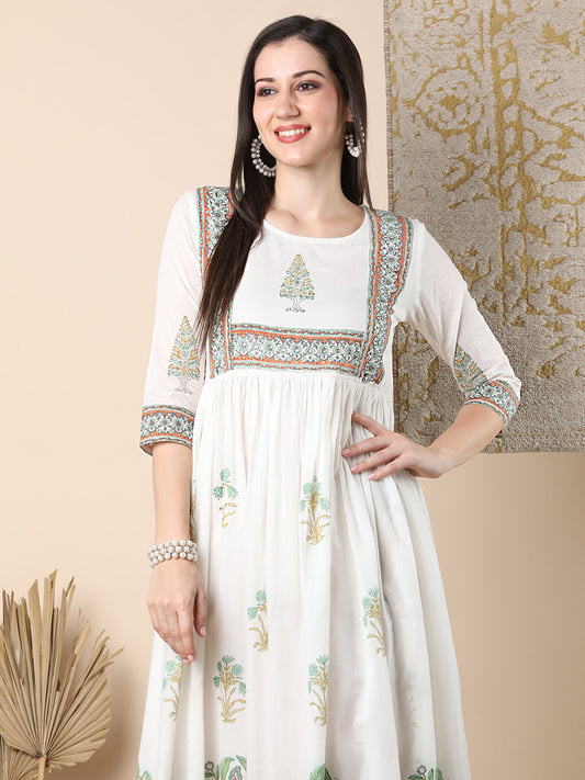 Ethnic Floral Printed & Embroidered A-Line Layered...