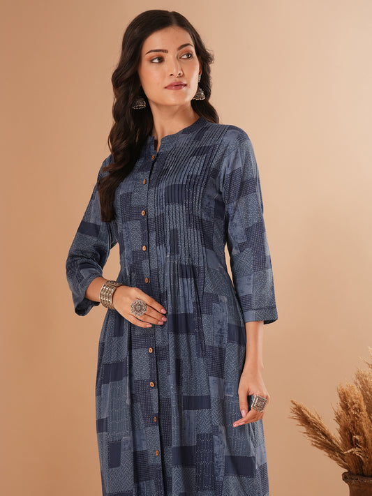 Geometric Checks Printed Pleated A-Line Flared Midi...