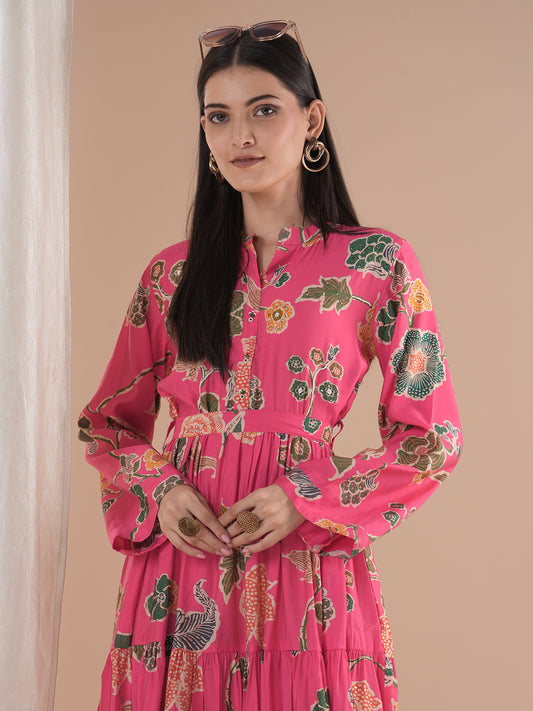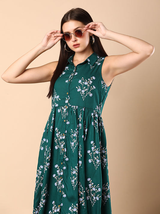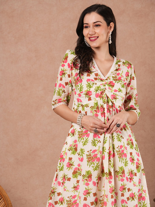 Ethnic Floral Printed A-Line Pleated Midi Dress...