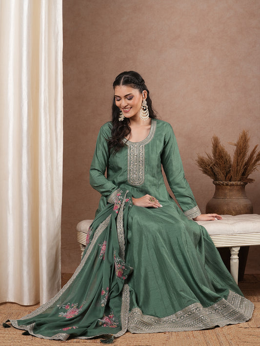 Solid Ethnic Embroidered Anarkali Flared Maxi Dress...
