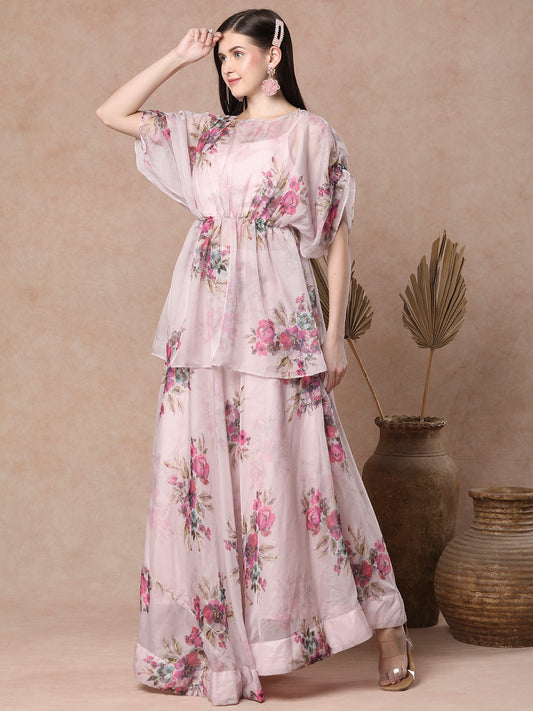 Solid Floral Printed Kaftan Kurta with Palazzo...