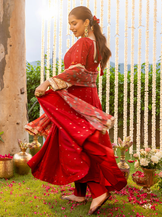 MRP (Inclusive of all taxes)Regular price ₹ 4,299.00₹ 4,299.00 Regular priceUnit price / per₹ 10,799.00Sale priceM L XL 2XL add to cartSale{"id":7605643739222,"title":"Solid Ethnic Embroidered Anarkali Flared Kurta with Pant and Printed Dupatta - Red","handle":"solid-ethnic-embroidered-anarkali-flared-kurta-with-pant-and-printed-dupatta-red","description":"\u003ch1\u003eHighlights\u003c\/h1\u003e\n\u003cp\u003e\u003cbr\u003e\u003cbr\u003e-Make a striking statement in this Red Solid Ethnic Embroidered Anarkali Set, crafted from a luxurious silk blend fabric that exudes elegance. The Anarkali features intricately embroidered sleeves that add a touch of regal charm, paired with a sleek solid pant for a refined silhouette. A floral printed dupatta completes the look with a hint of romance and grace—perfect for festive soirées or elegant celebrations.\u003c\/p\u003e\n\u003ch1\u003eFabric \u0026amp; Colour\u003c\/h1\u003e\n\u003cp\u003e\u003cbr\u003eTop Colour: Red\u003cbr\u003eTop Fabric: Silk Blend\u003cbr\u003eBottom Colour: Red\u003cbr\u003eBottom Fabric: Silk Blend\u003cbr\u003eDupatta Colour: Red\u003cbr\u003eDupatta Fabric: Organza\u003c\/p\u003e\n\u003ch1\u003eSpecifications\u003c\/h1\u003e\n\u003cp\u003e\u003cbr\u003eTop Design: Solid\u003cbr\u003eTop Craft: Embroidery, Plain and Prints, Lace\u003cbr\u003eTop Shape: Anarkali\u003cbr\u003eNeck: V-Neck\u003cbr\u003eSleeve Length: Long Sleeves\u003cbr\u003eTop Length: Calf Length\u003cbr\u003eHemline: Flared\u003cbr\u003e\u003cbr\u003e\u003c\/p\u003e\n\u003cp\u003eBottom Type: Trousers\u003cbr\u003eBottom Closure: Slip-On\u003cbr\u003eWaistband: Partially Elasticated\u003c\/p\u003e\n\u003cp\u003eDupatta Pattern: Printed\u003cbr\u003eDupatta Border: Taping\u003c\/p\u003e\n\u003cp\u003eWash Care: Hand Wash\u003c\/p\u003e\n\u003cp\u003eLength (in inches)\u003cbr\u003eKurta – 52, Sleeves – 30,\u003cbr\u003eBottom – 40\u003c\/p\u003e\n\u003cp\u003eModel’s Height: 5’7”. Wearing Size S.\u003c\/p\u003e\n\u003ch1\u003eProduct Information\u003c\/h1\u003e\n\u003cp\u003e\u003cbr\u003eManufactured\/Packed\/Marketed By:\u003cbr\u003eFashor Lifestyle Pvt. Ltd.\u003cbr\u003e28\/30, Sudarshanpura Industrial Area,\u003cbr\u003eJaipur - 302006.\u003cbr\u003eCountry of Origin: India\u003c\/p\u003e","published_at":"2025-11-11T10:47:18+05:30","created_at":"2025-07-30T15:45:54+05:30","vendor":"FASHOR","type":"3P Kurta Set","tags":["31510","above-3000","All Styles","colour_red","craft_embroidery","craft_lace","craft_plain-and-prints","design_solid","fabric_silk-blend","festivewear","KURTI","kurtis","M","meta-size-chart-","now-trending","occasionwear","rakhi","rakhi-favourites","shape_anarkali"],"price":429900,"price_min":429900,"price_max":429900,"available":true,"price_varies":false,"compare_at_price":1079900,"compare_at_price_min":1079900,"compare_at_price_max":1079900,"compare_at_price_varies":false,"variants":[{"id":42535048839254,"title":"M","option1":"M","option2":null,"option3":null,"sku":"38-ST031510F5FS","requires_shipping":true,"taxable":false,"featured_image":{"id":34809525338198,"product_id":7605643739222,"position":5,"created_at":"2025-07-30T16:12:27+05:30","updated_at":"2025-07-30T16:13:39+05:30","alt":null,"width":1080,"height":1440,"src":"\/\/fashor.com\/cdn\/shop\/files\/31592_4.jpg?v=1753872219","variant_ids":[42535048839254,42535048872022,42535048904790,42535048937558]},"available":true,"name":"Solid Ethnic Embroidered Anarkali Flared Kurta with Pant and Printed Dupatta - Red - M","public_title":"M","options":["M"],"price":429900,"weight":0,"compare_at_price":1079900,"inventory_quantity":1,"inventory_management":"shopify","inventory_policy":"deny","barcode":"","featured_media":{"alt":null,"id":27012833476694,"position":5,"preview_image":{"aspect_ratio":0.75,"height":1440,"width":1080,"src":"\/\/fashor.com\/cdn\/shop\/files\/31592_4.jpg?v=1753872219"}},"requires_selling_plan":false,"selling_plan_allocations":[],"quantity_rule":{"min":1,"max":null,"increment":1}},{"id":42535048872022,"title":"L","option1":"L","option2":null,"option3":null,"sku":"40-ST031510F5FS","requires_shipping":true,"taxable":false,"featured_image":{"id":34809525338198,"product_id":7605643739222,"position":5,"created_at":"2025-07-30T16:12:27+05:30","updated_at":"2025-07-30T16:13:39+05:30","alt":null,"width":1080,"height":1440,"src":"\/\/fashor.com\/cdn\/shop\/files\/31592_4.jpg?v=1753872219","variant_ids":[42535048839254,42535048872022,42535048904790,42535048937558]},"available":false,"name":"Solid Ethnic Embroidered Anarkali Flared Kurta with Pant and Printed Dupatta - Red - L","public_title":"L","options":["L"],"price":429900,"weight":0,"compare_at_price":1079900,"inventory_quantity":0,"inventory_management":"shopify","inventory_policy":"deny","barcode":"","featured_media":{"alt":null,"id":27012833476694,"position":5,"preview_image":{"aspect_ratio":0.75,"height":1440,"width":1080,"src":"\/\/fashor.com\/cdn\/shop\/files\/31592_4.jpg?v=1753872219"}},"requires_selling_plan":false,"selling_plan_allocations":[],"quantity_rule":{"min":1,"max":null,"increment":1}},{"id":42535048904790,"title":"XL","option1":"XL","option2":null,"option3":null,"sku":"42-ST031510F5FS","requires_shipping":true,"taxable":false,"featured_image":{"id":34809525338198,"product_id":7605643739222,"position":5,"created_at":"2025-07-30T16:12:27+05:30","updated_at":"2025-07-30T16:13:39+05:30","alt":null,"width":1080,"height":1440,"src":"\/\/fashor.com\/cdn\/shop\/files\/31592_4.jpg?v=1753872219","variant_ids":[42535048839254,42535048872022,42535048904790,42535048937558]},"available":false,"name":"Solid Ethnic Embroidered Anarkali Flared Kurta with Pant and Printed Dupatta - Red - XL","public_title":"XL","options":["XL"],"price":429900,"weight":0,"compare_at_price":1079900,"inventory_quantity":0,"inventory_management":"shopify","inventory_policy":"deny","barcode":"","featured_media":{"alt":null,"id":27012833476694,"position":5,"preview_image":{"aspect_ratio":0.75,"height":1440,"width":1080