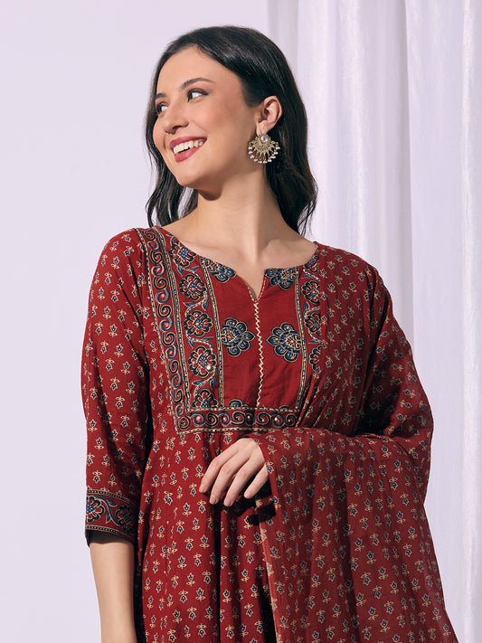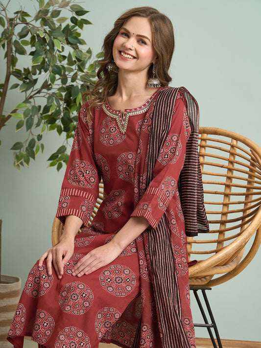 Ethnic Ajrakh Printed Embroidered Straight Fit Kurta...