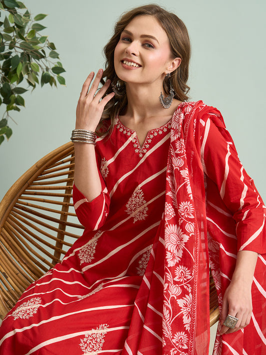 Festive Leheriya Printed Embroidered & Kurta with...
