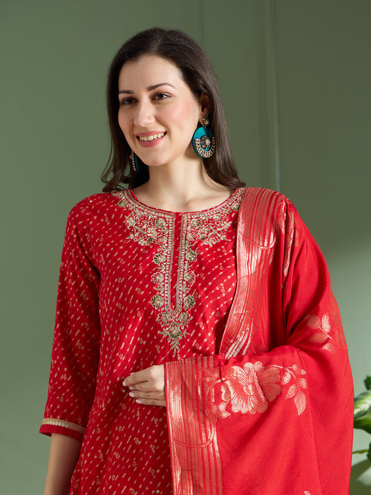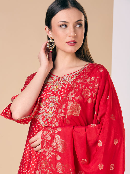 Bandhani Printed Embroidered Straight Fit Kurta with...