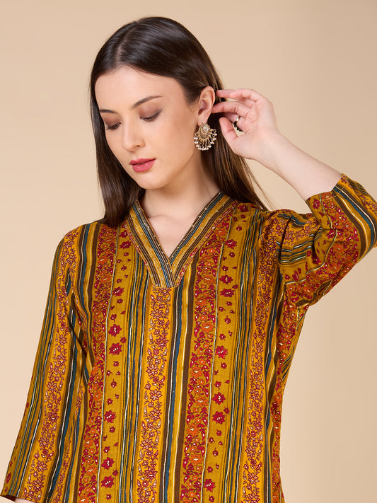 MRP (Inclusive of all taxes)Regular price ₹ 799.00₹ 799.00 Regular priceUnit price / per₹ 2,499.00Sale priceM L XL 2XL 3XL add to cartSale{"id":7632952295510,"title":"Stripes Floral Printed Straight Fit Kurta - Mustard","handle":"stripes-floral-printed-straight-fit-kurta-mustard","description":"\u003ch2\u003eHighlights\u003c\/h2\u003e\n\u003cp\u003e\u003cbr\u003e-Turn heads in this Mustard Stripes Floral Printed Straight Fit Kurta, crafted from a lustrous viscose rayon. Featuring a v neckline with delicate threadwork and shimmering foil prints, it blends vibrant charm with elegant detailing—perfect for festive outings or special occasions.\u003c\/p\u003e\n\u003ch1\u003eFabric \u0026amp; Colour\u003c\/h1\u003e\n\u003cp\u003e\u003cbr\u003eColour: Mustard\u003cbr\u003eFabric: Viscose Rayon\u003c\/p\u003e\n\u003ch1\u003eSpecifications\u003c\/h1\u003e\n\u003cp\u003e\u003cbr\u003eDesign: Floral print, Abstract print\u003cbr\u003eCraft: Embroidery, Plain and Prints\u003cbr\u003eShape: Straight\u003cbr\u003eNeck: Round Neck\u003cbr\u003eSleeve Length: Three-Quarter Sleeves\u003cbr\u003eTop Length: Knee Length\u003cbr\u003eHemline: Straight\u003cbr\u003eSlit: Side Slits\u003c\/p\u003e\n\u003cp\u003eWash Care: Hand Wash\u003c\/p\u003e\n\u003cp\u003eLength (in inches)\u003cbr\u003eKurta – 45, Sleeves – 17\u003c\/p\u003e\n\u003cp\u003eModel’s Height: 5’7”. Wearing Size S.\u003c\/p\u003e\n\u003ch1\u003eProduct Information\u003c\/h1\u003e\n\u003cp\u003e\u003cbr\u003eManufactured\/Packed\/Marketed By:\u003cbr\u003eFashor Lifestyle Pvt. Ltd.\u003cbr\u003e28\/30, Sudarshanpura Industrial Area,\u003cbr\u003eJaipur - 302006.\u003cbr\u003eCountry of Origin: India\u003c\/p\u003e","published_at":"2025-09-03T14:46:15+05:30","created_at":"2025-09-03T14:28:30+05:30","vendor":"FASHOR","type":"Kurtas","tags":["2XL","32442","All Styles","casualwear","colour_mustard","craft_embroidery","craft_plain-and-prints","design_abstract-print","design_floral-print","discount-zone","fabric_viscose-rayon","KURTI","kurtis","L","M","meta-size-chart-","now-trending","offer-zone","shape_straight","single-kurta","under-1000","XL"],"price":79900,"price_min":79900,"price_max":79900,"available":true,"price_varies":false,"compare_at_price":249900,"compare_at_price_min":249900,"compare_at_price_max":249900,"compare_at_price_varies":false,"variants":[{"id":42970266239062,"title":"M","option1":"M","option2":null,"option3":null,"sku":"38-KAA32442H5FS","requires_shipping":true,"taxable":false,"featured_image":{"id":35060308901974,"product_id":7632952295510,"position":4,"created_at":"2025-09-03T14:30:01+05:30","updated_at":"2025-09-03T14:30:52+05:30","alt":null,"width":1080,"height":1440,"src":"\/\/fashor.com\/cdn\/shop\/files\/31984_3.jpg?v=1756890052","variant_ids":[42970266239062,42970266271830,42970266304598,42970266337366,42970266370134]},"available":true,"name":"Stripes Floral Printed Straight Fit Kurta - Mustard - M","public_title":"M","options":["M"],"price":79900,"weight":0,"compare_at_price":249900,"inventory_quantity":1,"inventory_management":"shopify","inventory_policy":"deny","barcode":"","featured_media":{"alt":null,"id":27177219391574,"position":4,"preview_image":{"aspect_ratio":0.75,"height":1440,"width":1080,"src":"\/\/fashor.com\/cdn\/shop\/files\/31984_3.jpg?v=1756890052"}},"requires_selling_plan":false,"selling_plan_allocations":[],"quantity_rule":{"min":1,"max":null,"increment":1}},{"id":42970266271830,"title":"L","option1":"L","option2":null,"option3":null,"sku":"40-KAA32442H5FS","requires_shipping":true,"taxable":false,"featured_image":{"id":35060308901974,"product_id":7632952295510,"position":4,"created_at":"2025-09-03T14:30:01+05:30","updated_at":"2025-09-03T14:30:52+05:30","alt":null,"width":1080,"height":1440,"src":"\/\/fashor.com\/cdn\/shop\/files\/31984_3.jpg?v=1756890052","variant_ids":[42970266239062,42970266271830,42970266304598,42970266337366,42970266370134]},"available":true,"name":"Stripes Floral Printed Straight Fit Kurta - Mustard - L","public_title":"L","options":["L"],"price":79900,"weight":0,"compare_at_price":249900,"inventory_quantity":1,"inventory_management":"shopify","inventory_policy":"deny","barcode":"","featured_media":{"alt":null,"id":27177219391574,"position":4,"preview_image":{"aspect_ratio":0.75,"height":1440,"width":1080,"src":"\/\/fashor.com\/cdn\/shop\/files\/31984_3.jpg?v=1756890052"}},"requires_selling_plan":false,"selling_plan_allocations":[],"quantity_rule":{"min":1,"max":null,"increment":1}},{"id":42970266304598,"title":"XL","option1":"XL","option2":null,"option3":null,"sku":"42-KAA32442H5FS","requires_shipping":true,"taxable":false,"featured_image":{"id":35060308901974,"product_id":7632952295510,"position":4,"created_at":"2025-09-03T14:30:01+05:30","updated_at":"2025-09-03T14:30:52+05:30","alt":null,"width":1080,"height":1440,"src":"\/\/fashor.com\/cdn\/shop\/files\/31984_3.jpg?v=1756890052","variant_ids":[42970266239062,42970266271830,42970266304598,42970266337366,42970266370134]},"available":true,"name":"Stripes Floral Printed Straight Fit Kurta - Mustard - XL","public_title":"XL","options":["XL"],"price":79900,"weight":0,"compare_at_price":249900,"inventory_quantity":3,"inventory_management":"shopify","inventory_policy":"deny","barcode":"","featured_media":{"alt":null,"id":27177219391574,"position":4,"preview_image":{"aspect_ratio":0.75,"height":1440,"width":1080,"src":"\/\/fashor.com\/cdn\/shop\/files\/31984_3.jpg?v=1756890052"}},"requires_selling_plan":false,"selling_plan_allocations":[],"quantity_rule":{"min":1,"max":null,"increment":1}},{"id":42970266337366,"title":"2XL","option1":"2XL","option2":null,"option3":null,"sku":"44-KAA32442H5FS","requires_shipping":true,"taxable":false,"featured_image":{"id":35060308901974,"product_id":7632952295510,"position":4,"created_at":"2025-09-03T14:30:01+05:30","updated_at":"2025-09-03T14:30:52+05:30","alt":null,"width":1080,"height":1440,"src":"\/\/fashor.com\/cdn\/shop\/files\/31984_3.jpg?v=1756890052","variant_ids":[429