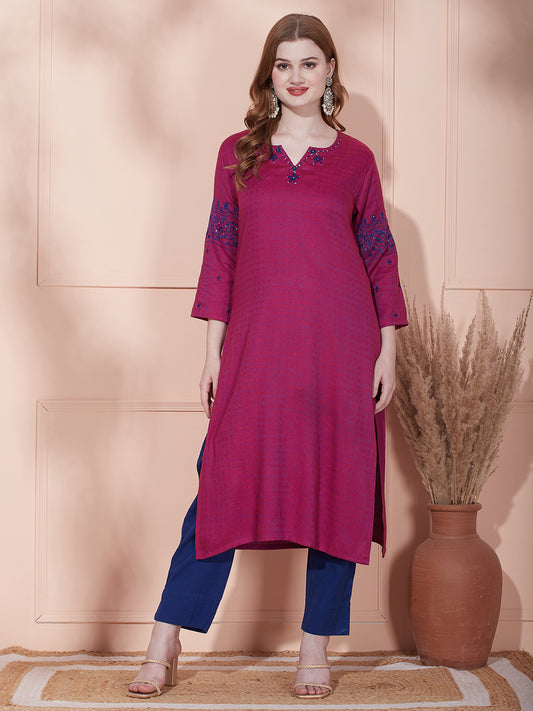• Solid Sequin Embroidered Straight Fit Kurta -...