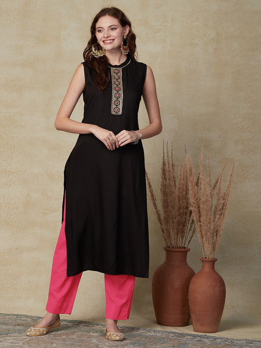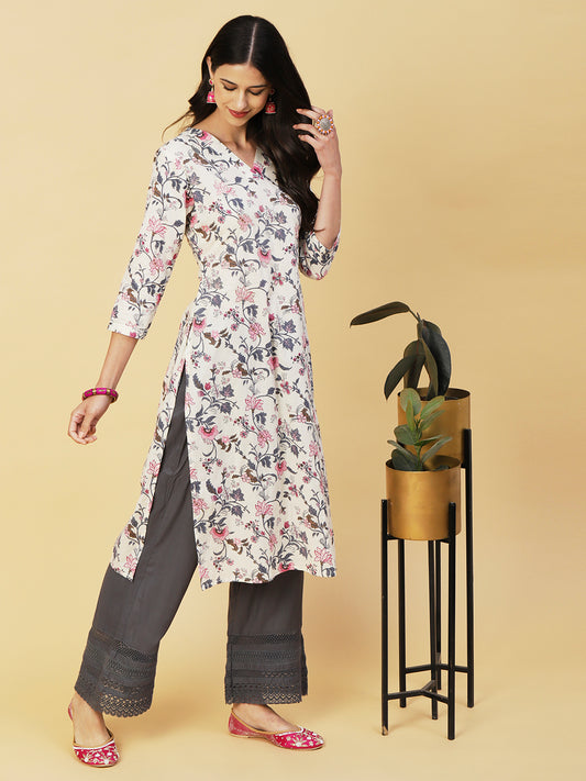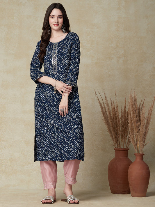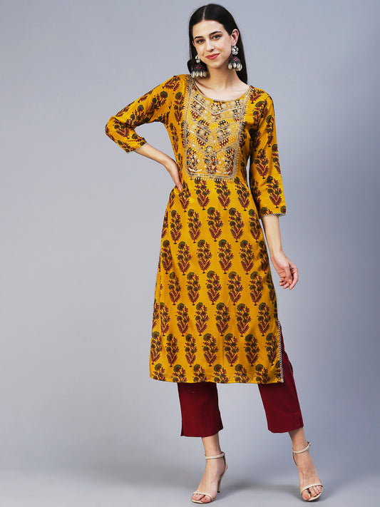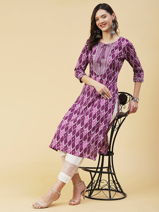 Ethnic Printed Mirror & Zari Embroidered Kurta...