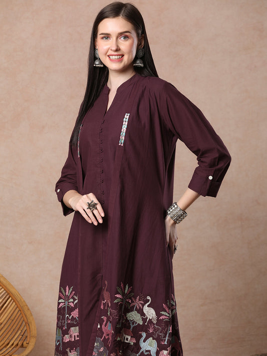 Solid A-line Kurta with Flora & Fauna...