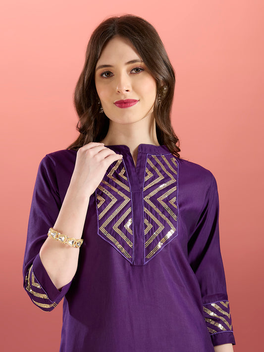 MRP (Inclusive of all taxes)Regular price ₹ 1,899.00₹ 1,899.00 Regular priceUnit price / per₹ 4,799.00Sale priceS M L XL 2XL 3XL add to cartSale{"id":7721010397270,"title":"Solid Sequin Embroidered A-Line Co-ord Set - Purple","handle":"solid-sequin-embroidered-a-line-co-ord-set-purple","description":"\u003ch1\u003eHighlights\u003c\/h1\u003e\n\u003cp\u003e\u003cbr\u003e\u003cbr\u003e-Radiate refined glamour with this Solid Sequin Embroidered A-Line Co-ord Set in a regal purple hue. Crafted from lustrous muslin silk, the set features a chic mandarin collar and sparkling sequin work adorning the yoke and cuffs for an elevated touch. Paired with sleek solid pants, this ensemble blends effortless sophistication with modern festive charm—perfect for evening events and special occasions.\u003c\/p\u003e\n\u003ch1\u003e\n\u003cbr\u003eFabric \u0026amp; Colour\u003c\/h1\u003e\n\u003cp\u003e\u003cbr\u003eTop Colour: Purple\u003cbr\u003eTop Fabric: Muslin Silk\u003cbr\u003eBottom Colour: Purple\u003cbr\u003eBottom Fabric: Muslin Silk\u003c\/p\u003e\n\u003ch1\u003eSpecifications\u003c\/h1\u003e\n\u003cp\u003e\u003cbr\u003eTop Design: Solid\u003cbr\u003eTop Craft: Sequins, Embroidery\u003cbr\u003eTop Shape: A-line\u003cbr\u003eNeck: Mandarin Collar\u003cbr\u003eSleeve Length: Three-Quarter Sleeves\u003cbr\u003eTop Length: Calf Length\u003cbr\u003eHemline: Flared\u003cbr\u003eSlit: Side Slits\u003c\/p\u003e\n\u003cp\u003eBottom Type: Trousers\u003cbr\u003eBottom Closure: Slip-On\u003cbr\u003eWaistband: Partially Elasticated\u003c\/p\u003e\n\u003cp\u003eWash Care: Machine Wash\u003c\/p\u003e\n\u003cp\u003eLength (in inches)\u003cbr\u003eKurta – 45, Sleeves – 16,\u003cbr\u003eBottom - 42\u003c\/p\u003e\n\u003cp\u003eModel’s Height: 5’7”. Wearing Size S.\u003c\/p\u003e\n\u003ch1\u003eProduct Information\u003c\/h1\u003e\n\u003cp\u003e\u003cbr\u003eManufactured\/Packed\/Marketed By:\u003cbr\u003eFashor Lifestyle Pvt. Ltd.\u003cbr\u003e28\/30, Sudarshanpura Industrial Area,\u003cbr\u003eJaipur - 302006.\u003cbr\u003eCountry of Origin: India\u003c\/p\u003e","published_at":"2025-11-27T13:46:21+05:30","created_at":"2025-11-27T10:34:12+05:30","vendor":"FASHOR","type":"2P Kurta Set","tags":["1001-2000","2XL","33578","3XL","All Styles","casualwear","co-ord","colour_purple","craft_plain-and-prints","craft_sequins","design_solid","fabric_muslin-silk","KURTI","kurtis","L","M","meta-size-chart-","now-trending","S","shape_a-line","XL"],"price":189900,"price_min":189900,"price_max":189900,"available":true,"price_varies":false,"compare_at_price":479900,"compare_at_price_min":479900,"compare_at_price_max":479900,"compare_at_price_varies":false,"variants":[{"id":43683417653334,"title":"S","option1":"S","option2":null,"option3":null,"sku":"36-KBA33578J5FS","requires_shipping":true,"taxable":true,"featured_image":{"id":35733233336406,"product_id":7721010397270,"position":3,"created_at":"2025-11-27T10:35:33+05:30","updated_at":"2025-11-27T10:36:49+05:30","alt":null,"width":1080,"height":1440,"src":"\/\/fashor.com\/cdn\/shop\/files\/32788_1.jpg?v=1764220009","variant_ids":[43683417653334,43683417686102,43683417718870,43683417751638,43683417784406,43683417817174]},"available":true,"name":"Solid Sequin Embroidered A-Line Co-ord Set - Purple - S","public_title":"S","options":["S"],"price":189900,"weight":0,"compare_at_price":479900,"inventory_quantity":1,"inventory_management":"shopify","inventory_policy":"deny","barcode":"","featured_media":{"alt":null,"id":27816038039638,"position":3,"preview_image":{"aspect_ratio":0.75,"height":1440,"width":1080,"src":"\/\/fashor.com\/cdn\/shop\/files\/32788_1.jpg?v=1764220009"}},"requires_selling_plan":false,"selling_plan_allocations":[],"quantity_rule":{"min":1,"max":null,"increment":1}},{"id":43683417686102,"title":"M","option1":"M","option2":null,"option3":null,"sku":"38-KBA33578J5FS","requires_shipping":true,"taxable":true,"featured_image":{"id":35733233336406,"product_id":7721010397270,"position":3,"created_at":"2025-11-27T10:35:33+05:30","updated_at":"2025-11-27T10:36:49+05:30","alt":null,"width":1080,"height":1440,"src":"\/\/fashor.com\/cdn\/shop\/files\/32788_1.jpg?v=1764220009","variant_ids":[43683417653334,43683417686102,43683417718870,43683417751638,43683417784406,43683417817174]},"available":true,"name":"Solid Sequin Embroidered A-Line Co-ord Set - Purple - M","public_title":"M","options":["M"],"price":189900,"weight":0,"compare_at_price":479900,"inventory_quantity":1,"inventory_management":"shopify","inventory_policy":"deny","barcode":"","featured_media":{"alt":null,"id":27816038039638,"position":3,"preview_image":{"aspect_ratio":0.75,"height":1440,"width":1080,"src":"\/\/fashor.com\/cdn\/shop\/files\/32788_1.jpg?v=1764220009"}},"requires_selling_plan":false,"selling_plan_allocations":[],"quantity_rule":{"min":1,"max":null,"increment":1}},{"id":43683417718870,"title":"L","option1":"L","option2":null,"option3":null,"sku":"40-KBA33578J5FS","requires_shipping":true,"taxable":true,"featured_image":{"id":35733233336406,"product_id":7721010397270,"position":3,"created_at":"2025-11-27T10:35:33+05:30","updated_at":"2025-11-27T10:36:49+05:30","alt":null,"width":1080,"height":1440,"src":"\/\/fashor.com\/cdn\/shop\/files\/32788_1.jpg?v=1764220009","variant_ids":[43683417653334,43683417686102,43683417718870,43683417751638,43683417784406,43683417817174]},"available":true,"name":"Solid Sequin Embroidered A-Line Co-ord Set - Purple - L","public_title":"L","options":["L"],"price":189900,"weight":0,"compare_at_price":479900,"inventory_quantity":4,"inventory_management":"shopify","inventory_policy":"deny","barcode":"","featured_media":{"alt":null,"id":27816038039638,"position":3,"preview_image":{"aspect_ratio":0.75,"height":1440,"width":1080,"src":"\/\/fashor.com\/cdn\/shop\/files\/32788_1.jpg?v=1764220009"}},"requires_selling_plan":false,"selling_plan_allocations":[],"quantity_rule":{"min":1,"max":null,"increment":1}},{"id":43683417751638,"title":"XL","option1":"XL","option2":nu