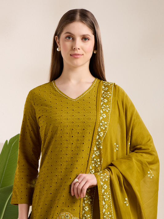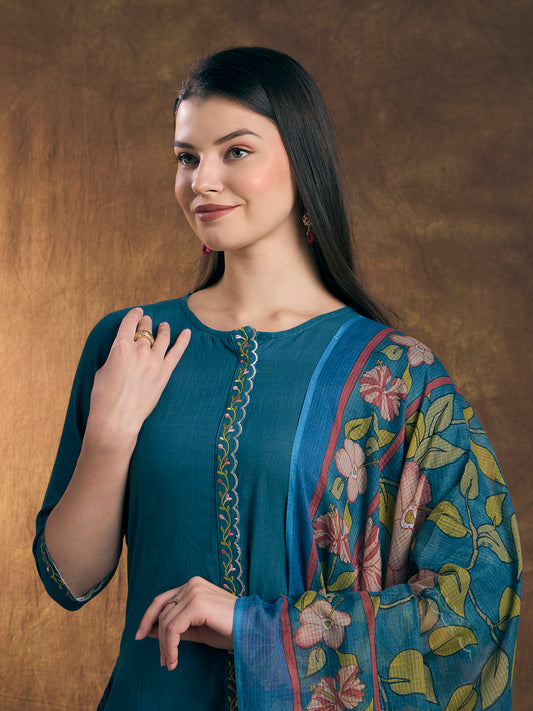 Solid Ethnic Embroidered Straight Kurta with Pant...
