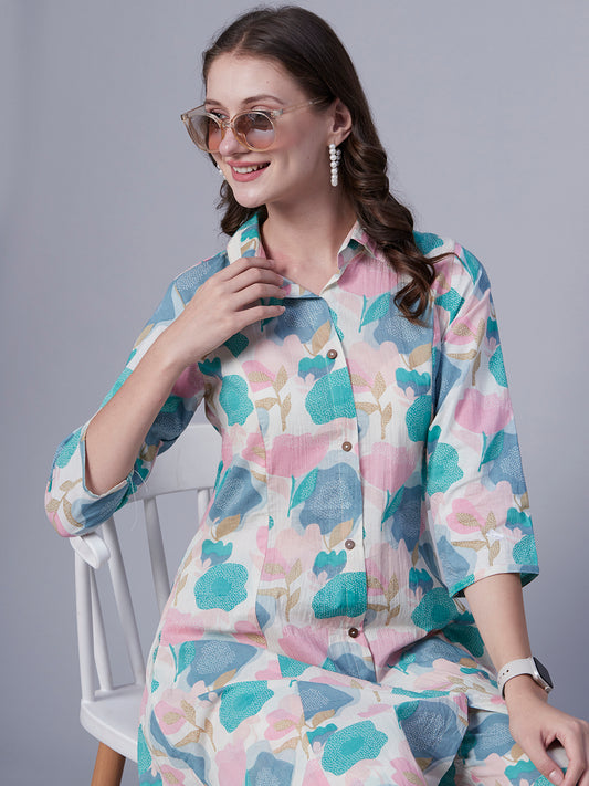 Floral & Abstract Printed Asymmetric Hem Shirt...