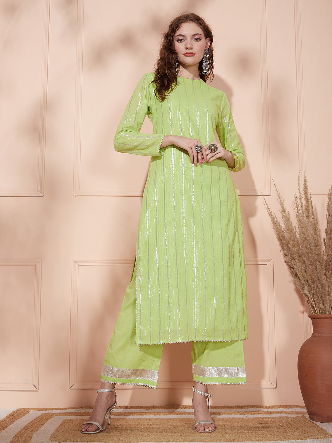 MRP (Inclusive of all taxes)Regular price ₹ 3,199.00₹ 3,199.00 Regular priceUnit price / per₹ 7,199.00Sale priceM L XL 2XL 3XL 4XL 5XL add to cartSale{"id":6816477970518,"title":"Ethnic Printed \u0026 Embroidered Straight Fit Kurta with Pants - Green","handle":"ethnic-printed-embroidered-straight-fit-kurta-with-pants-green","description":"\u003cp data-mce-fragment=\"1\"\u003e\u003cspan style=\"font-weight: 400;\" data-mce-fragment=\"1\" data-mce-style=\"font-weight: 400;\"\u003e\u003c\/span\u003e\u003cspan style=\"font-weight: 400;\" data-mce-fragment=\"1\" data-mce-style=\"font-weight: 400;\"\u003eStyle: Kurta - Straight, Bottom - Pants\u003c\/span\u003e\u003c\/p\u003e\n\u003cp data-mce-fragment=\"1\"\u003e\u003cspan style=\"font-weight: 400;\" data-mce-fragment=\"1\" data-mce-style=\"font-weight: 400;\"\u003eType: Everyday Wear\u003c\/span\u003e\u003c\/p\u003e\n\u003cp data-mce-fragment=\"1\"\u003e\u003cspan style=\"font-weight: 400;\" data-mce-fragment=\"1\" data-mce-style=\"font-weight: 400;\"\u003eNeckline: Collar Neckline\u003c\/span\u003e\u003c\/p\u003e\n\u003cp data-mce-fragment=\"1\"\u003e\u003cspan style=\"font-weight: 400;\" data-mce-fragment=\"1\" data-mce-style=\"font-weight: 400;\"\u003eSleeve Pattern: Cuff Sleeves\u003c\/span\u003e\u003c\/p\u003e\n\u003cp data-mce-fragment=\"1\"\u003e\u003cspan style=\"font-weight: 400;\" data-mce-fragment=\"1\" data-mce-style=\"font-weight: 400;\"\u003eSleeve Length: 3\/4th\u003c\/span\u003e\u003c\/p\u003e\n\u003cp data-mce-fragment=\"1\"\u003e\u003cspan style=\"font-weight: 400;\" data-mce-fragment=\"1\" data-mce-style=\"font-weight: 400;\"\u003eProduct Details:\u003c\/span\u003e\u003c\/p\u003e\n\u003cul data-mce-fragment=\"1\"\u003e\n\u003cli data-mce-fragment=\"1\"\u003e\u003cspan style=\"font-weight: 400;\" data-mce-fragment=\"1\" data-mce-style=\"font-weight: 400;\"\u003e Straight Fit Kurta\u003c\/span\u003e\u003c\/li\u003e\n\u003cli data-mce-fragment=\"1\"\u003e\u003cspan style=\"font-weight: 400;\" data-mce-fragment=\"1\" data-mce-style=\"font-weight: 400;\"\u003e Ethnic Prints all over\u003c\/span\u003e\u003c\/li\u003e\n\u003cli data-mce-fragment=\"1\"\u003e\u003cspan style=\"font-weight: 400;\" data-mce-fragment=\"1\" data-mce-style=\"font-weight: 400;\"\u003e Ethnic Embroidered Placket \u003c\/span\u003e\u003c\/li\u003e\n\u003cli data-mce-fragment=\"1\"\u003e\u003cspan style=\"font-weight: 400;\" data-mce-fragment=\"1\" data-mce-style=\"font-weight: 400;\"\u003e Embellished with Gota \u0026amp; Coin Detailing \u003c\/span\u003e\u003c\/li\u003e\n\u003cli data-mce-fragment=\"1\"\u003e\u003cspan style=\"font-weight: 400;\" data-mce-fragment=\"1\" data-mce-style=\"font-weight: 400;\"\u003e Highlighted with Foil Prints \u003c\/span\u003e\u003c\/li\u003e\n\u003cli data-mce-fragment=\"1\"\u003e\u003cspan style=\"font-weight: 400;\" data-mce-fragment=\"1\" data-mce-style=\"font-weight: 400;\"\u003e Patch Pocket at Front \u003c\/span\u003e\u003c\/li\u003e\n\u003cli data-mce-fragment=\"1\"\u003e\u003cspan style=\"font-weight: 400;\" data-mce-fragment=\"1\" data-mce-style=\"font-weight: 400;\"\u003e Temple Gota Detailing \u003c\/span\u003e\u003c\/li\u003e\n\u003cli data-mce-fragment=\"1\"\u003e\u003cspan style=\"font-weight: 400;\" data-mce-fragment=\"1\" data-mce-style=\"font-weight: 400;\"\u003e Paired with Ethnic Printed Pants\u003c\/span\u003e\u003c\/li\u003e\n\u003cli data-mce-fragment=\"1\"\u003e\u003cspan style=\"font-weight: 400;\" data-mce-fragment=\"1\" data-mce-style=\"font-weight: 400;\"\u003e Enhanced with Foil Prints \u003c\/span\u003e\u003c\/li\u003e\n\u003cli data-mce-fragment=\"1\"\u003e\u003cspan style=\"font-weight: 400;\" data-mce-fragment=\"1\" data-mce-style=\"font-weight: 400;\"\u003e Partially Elasticated Waistline\u003c\/span\u003e\u003c\/li\u003e\n\u003cli data-mce-fragment=\"1\"\u003e\u003cspan style=\"font-weight: 400;\" data-mce-fragment=\"1\" data-mce-style=\"font-weight: 400;\"\u003e Slip-on Closure\u003c\/span\u003e\u003c\/li\u003e\n\u003c\/ul\u003e\n\u003cp data-mce-fragment=\"1\"\u003e\u003cspan style=\"font-weight: 400;\" data-mce-fragment=\"1\" data-mce-style=\"font-weight: 400;\"\u003eModel’s Height: 5’7” ft. Size: Wearing Size S \u003c\/span\u003e\u003c\/p\u003e\n\u003ch1 data-mce-fragment=\"1\"\u003e\u003cspan style=\"font-weight: 400;\" data-mce-fragment=\"1\" data-mce-style=\"font-weight: 400;\"\u003eFabric Details\u003c\/span\u003e\u003c\/h1\u003e\n\u003cp data-mce-fragment=\"1\"\u003e\u003cspan style=\"font-weight: 400;\" data-mce-fragment=\"1\" data-mce-style=\"font-weight: 400;\"\u003eFabric: Kurta - Muslin Silk, Bottom - Muslin Silk \u003c\/span\u003e\u003c\/p\u003e\n\u003cp data-mce-fragment=\"1\"\u003e\u003cspan style=\"font-weight: 400;\" data-mce-fragment=\"1\" data-mce-style=\"font-weight: 400;\"\u003eColour: Kurta - Green, Bottom - Green \u003c\/span\u003e\u003c\/p\u003e\n\u003cp data-mce-fragment=\"1\"\u003e\u003cspan style=\"font-weight: 400;\" data-mce-fragment=\"1\" data-mce-style=\"font-weight: 400;\"\u003eWash Care: Hand wash in cold water\u003c\/span\u003e\u003c\/p\u003e\n\u003ch1\u003eGarment Measurements\u003c\/h1\u003e\n\u003cp\u003e\u003cstrong\u003eMeasurement (in inches) \u003c\/strong\u003e\u003c\/p\u003e\n\u003cp\u003eLength – 47, Sleeves – 19,\u003c\/p\u003e\n\u003cp\u003eBottom - 38\u003c\/p\u003e\n\u003ch1 data-mce-fragment=\"1\"\u003e\u003cspan data-mce-fragment=\"1\"\u003eProduct Information\u003c\/span\u003e\u003c\/h1\u003e\n\u003cp data-mce-fragment=\"1\"\u003e\u003cspan data-mce-fragment=\"1\"\u003e\u003cstrong\u003eManufactured\/Packed\/Marketed By:\u003c\/strong\u003e\u003cbr\u003e\u003c\/span\u003e\u003cspan data-mce-fragment=\"1\"\u003eFashor Lifestyle Pvt. Ltd.\u003cbr\u003e28\/30, Sudershanpura Industrial Area,\u003cbr\u003eJaipur - 302006.\u003cbr\u003e\u003cstrong\u003eCountry of Origin:\u003c\/strong\u003e India\u003c\/span\u003e\u003c\/p\u003e","published_at":"2025-12-17T06:46:45+05:30","created_at":"2022-10-01T12:11:02+05:30","vendor":"Fas