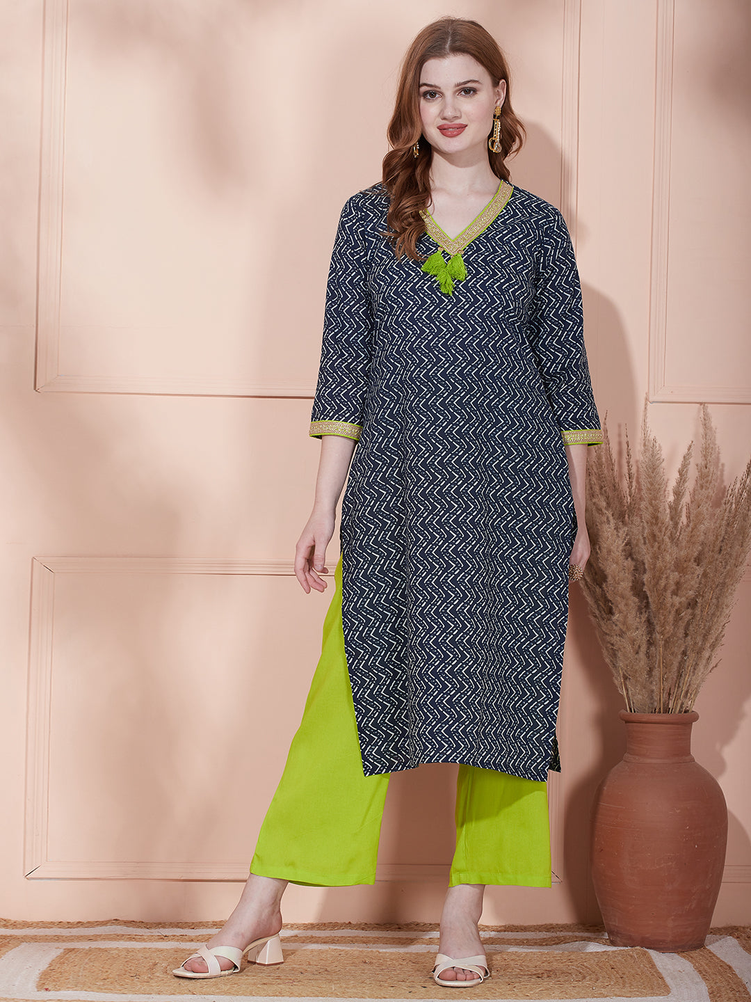 Ethnic Geometric & Stripes Printed A-Line Kurta...