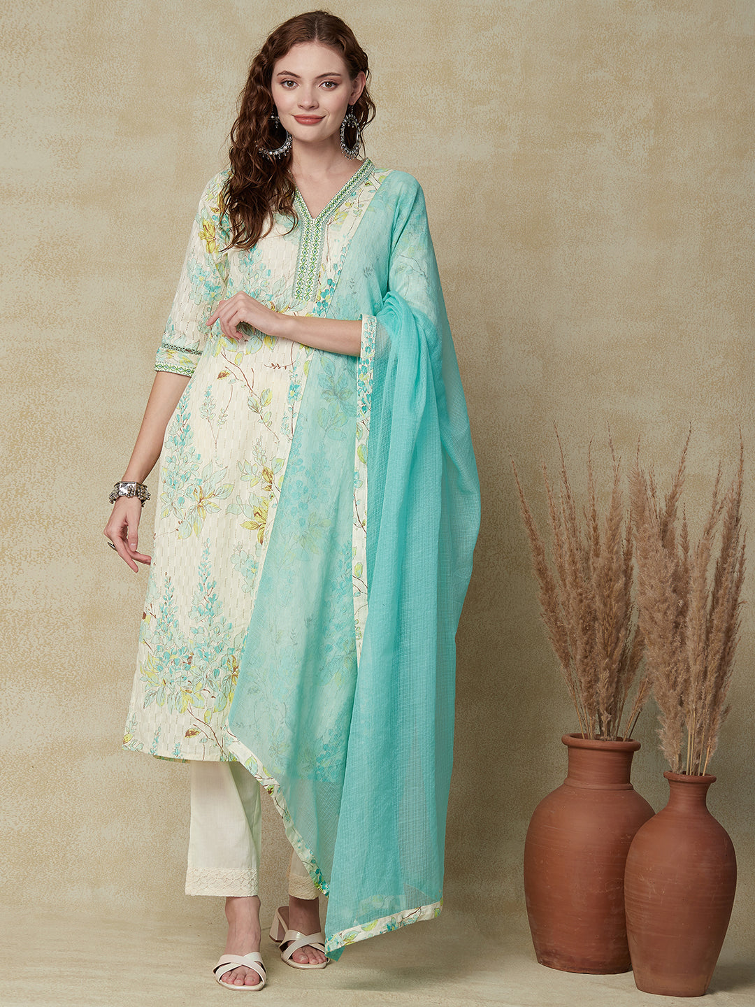 Ethnic Printed & Embroidered Straight Fit Kurta...