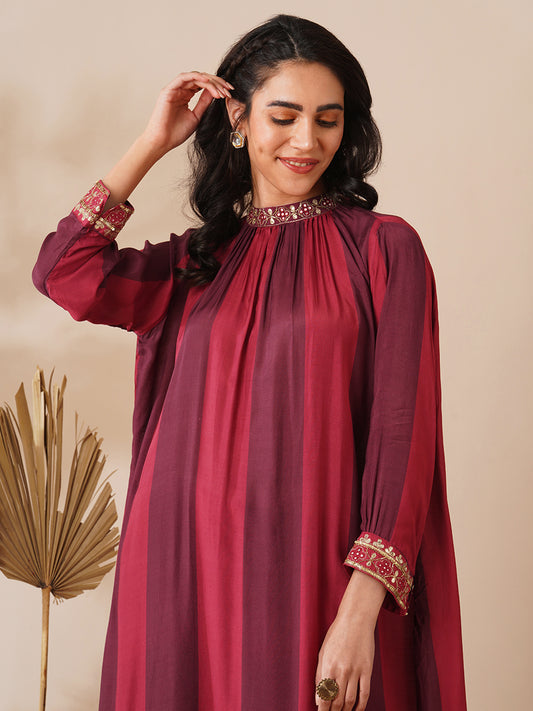 Gota Patti Embroidered Paneled A-Line Kurta with...