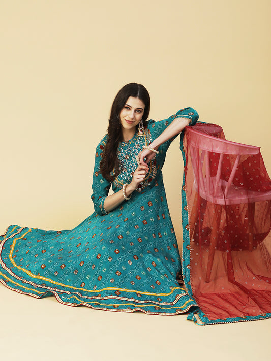 Bandhani Printed Gotapatti Embroidered Kurta With Pants...