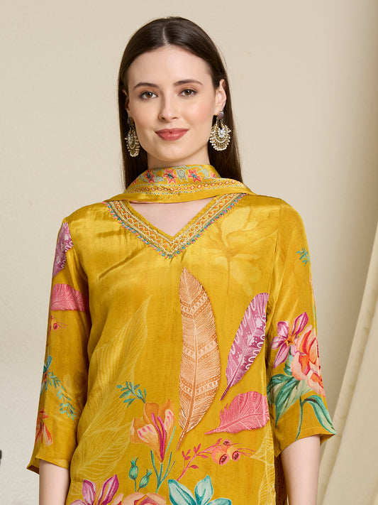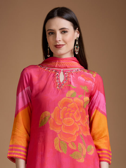 Ethnic Printed Embroidered Straight Kurta with Pant...