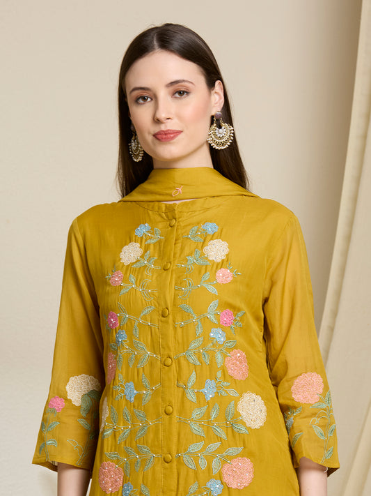MRP (Inclusive of all taxes)Regular price ₹ 5,099.00₹ 5,099.00 Regular priceUnit price / per₹ 5,099.00Sale priceM L XL 2XL 3XL add to cart{"id":7673750847574,"title":"Solid Floral Embroidered Straight Kurta with Pant \u0026 Dupatta - Mustard","handle":"solid-floral-embroidered-straight-kurta-with-pant-dupatta-mustard-2","description":"\u003ch1\u003eHighlights\u003cbr\u003e\n\u003c\/h1\u003e\n\u003cp\u003e\u003cbr\u003e-Brighten your style with our Solid Floral Embroidered Straight Kurta Set in a radiant Mustard hue. Tailored from breathable cotton, it features intricate floral embroidery and a smart mandarin collar for a touch of elegance. Paired with matching pants and a lightweight dupatta, this set is perfect for daytime festivities and casual celebrations.\u003c\/p\u003e\n\u003ch1\u003e\n\u003cbr\u003eFabric \u0026amp; Colour\u003c\/h1\u003e\n\u003cp\u003e\u003cbr\u003eTop Colour: Mustard\u003cbr\u003eTop Fabric: Cotton\u003cbr\u003eBottom Colour: Mustard\u003cbr\u003eBottom Fabric: Shantoon\u003cbr\u003eDupatta Colour: Mustard\u003cbr\u003eDupatta Fabric: Poly Chanderi\u003c\/p\u003e\n\u003ch1\u003eSpecifications\u003c\/h1\u003e\n\u003cp\u003e\u003cbr\u003eTop Design: Solid\u003cbr\u003eTop Craft: Embroidery, Plain and Prints\u003cbr\u003eTop Shape: Straight\u003cbr\u003eNeck: Mandarin Collar\u003cbr\u003eSleeve Length: Three-Quarter Sleeves\u003cbr\u003eTop Length: Calf Length\u003cbr\u003eHemline: Straight\u003cbr\u003eSlit: Side Slits\u003c\/p\u003e\n\u003cp\u003eBottom Type: Trousers\u003cbr\u003eBottom Closure: Slip-On\u003cbr\u003eWaistband: Elasticated\u003c\/p\u003e\n\u003cp\u003eDupatta Pattern: Embroidered, Solid\u003cbr\u003eDupatta Border: Solid\u003c\/p\u003e\n\u003cp\u003eWash Care: Hand Wash\u003c\/p\u003e\n\u003cp\u003eLength (in inches)\u003cbr\u003eKurta – 43, Sleeves – 17,\u003cbr\u003eBottom – 42\u003c\/p\u003e\n\u003cp\u003eModel’s Height: 5’7”. Wearing Size S.\u003c\/p\u003e\n\u003ch1\u003eProduct Information\u003c\/h1\u003e\n\u003cp\u003e\u003cbr\u003eManufactured\/Packed\/Marketed By:\u003cbr\u003eFashor Lifestyle Pvt. Ltd.\u003cbr\u003e28\/30, Sudarshanpura Industrial Area,\u003cbr\u003eJaipur - 302006.\u003cbr\u003eCountry of Origin: India\u003c\/p\u003e","published_at":"2025-10-13T17:15:44+05:30","created_at":"2025-10-13T15:21:57+05:30","vendor":"FASHOR","type":"3P Kurta Set","tags":["2XL","33221","3XL","above-3000","All Styles","casualwear","colour_mustard","craft_embroidery","craft_plain-and-prints","design_solid","fabric_cotton","KURTI","kurtis","L","M","meta-size-chart-","now-trending","shape_straight","XL"],"price":509900,"price_min":509900,"price_max":509900,"available":true,"price_varies":false,"compare_at_price":509900,"compare_at_price_min":509900,"compare_at_price_max":509900,"compare_at_price_varies":false,"variants":[{"id":43462677790806,"title":"M","option1":"M","option2":null,"option3":null,"sku":"38-STB33221I5FS","requires_shipping":true,"taxable":false,"featured_image":{"id":35387778826326,"product_id":7673750847574,"position":1,"created_at":"2025-10-13T15:22:40+05:30","updated_at":"2025-10-13T15:22:42+05:30","alt":null,"width":1080,"height":1440,"src":"\/\/fashor.com\/cdn\/shop\/files\/32439_1.jpg?v=1760349162","variant_ids":[43462677790806,43462677823574,43462677856342,43462677889110,43462677921878]},"available":true,"name":"Solid Floral Embroidered Straight Kurta with Pant \u0026 Dupatta - Mustard - M","public_title":"M","options":["M"],"price":509900,"weight":0,"compare_at_price":509900,"inventory_quantity":2,"inventory_management":"shopify","inventory_policy":"deny","barcode":"","featured_media":{"alt":null,"id":27496139817046,"position":1,"preview_image":{"aspect_ratio":0.75,"height":1440,"width":1080,"src":"\/\/fashor.com\/cdn\/shop\/files\/32439_1.jpg?v=1760349162"}},"requires_selling_plan":false,"selling_plan_allocations":[],"quantity_rule":{"min":1,"max":null,"increment":1}},{"id":43462677823574,"title":"L","option1":"L","option2":null,"option3":null,"sku":"40-STB33221I5FS","requires_shipping":true,"taxable":false,"featured_image":{"id":35387778826326,"product_id":7673750847574,"position":1,"created_at":"2025-10-13T15:22:40+05:30","updated_at":"2025-10-13T15:22:42+05:30","alt":null,"width":1080,"height":1440,"src":"\/\/fashor.com\/cdn\/shop\/files\/32439_1.jpg?v=1760349162","variant_ids":[43462677790806,43462677823574,43462677856342,43462677889110,43462677921878]},"available":true,"name":"Solid Floral Embroidered Straight Kurta with Pant \u0026 Dupatta - Mustard - L","public_title":"L","options":["L"],"price":509900,"weight":0,"compare_at_price":509900,"inventory_quantity":3,"inventory_management":"shopify","inventory_policy":"deny","barcode":"","featured_media":{"alt":null,"id":27496139817046,"position":1,"preview_image":{"aspect_ratio":0.75,"height":1440,"width":1080,"src":"\/\/fashor.com\/cdn\/shop\/files\/32439_1.jpg?v=1760349162"}},"requires_selling_plan":false,"selling_plan_allocations":[],"quantity_rule":{"min":1,"max":null,"increment":1}},{"id":43462677856342,"title":"XL","option1":"XL","option2":null,"option3":null,"sku":"42-STB33221I5FS","requires_shipping":true,"taxable":false,"featured_image":{"id":35387778826326,"product_id":7673750847574,"position":1,"created_at":"2025-10-13T15:22:40+05:30","updated_at":"2025-10-13T15:22:42+05:30","alt":null,"width":1080,"height":1440,"src":"\/\/fashor.com\/cdn\/shop\/files\/32439_1.jpg?v=1760349162","variant_ids":[43462677790806,43462677823574,43462677856342,43462677889110,43462677921878]},"available":true,"name":"Solid Floral Embroidered Straight Kurta with Pant \u0026 Dupatta - Mustard - XL","public_title":"XL","options":["XL"],"price":509900,"weight":0,"compare_at_price":509900,"inventory_quantity":4,"inventory_management":"shopify","inventory_policy":"deny","barcode":"","featured_media":{"alt":null,"id":27496139817046,"position":1,"preview_image":{"aspect_ratio":0.75,"height":1440,"width":1080,"src":"\/\/fashor.com\/cdn\/shop\/files\/32439_1.jpg?v=1760349162"}}