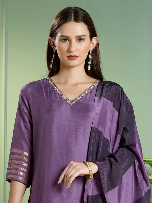 MRP (Inclusive of all taxes)Regular price ₹ 4,149.00₹ 4,149.00 Regular priceUnit price / per₹ 4,149.00Sale priceM L XL 2XL 3XL add to cart{"id":7673753370710,"title":"Solid Ethnic Embroidered Straight Kurta with Pant \u0026 Dupatta - Purple","handle":"solid-ethnic-embroidered-straight-kurta-with-pant-dupatta-purple-2","description":"\u003ch1\u003eHighlights\u003c\/h1\u003e\n\u003cp\u003e\u003cbr\u003e\u003cbr\u003e-Radiate elegance in this purple solid straight kurta set, crafted from luxurious muslin silk. Featuring a flattering V-neckline and delicate sequin embroidery, it’s paired with a solid pant and dupatta for a graceful ethnic ensemble.\u003c\/p\u003e\n\u003ch1\u003e\n\u003cbr\u003eFabric \u0026amp; Colour\u003c\/h1\u003e\n\u003cp\u003e\u003cbr\u003eTop Colour: Purple\u003cbr\u003eTop Fabric: Muslin Silk\u003cbr\u003eBottom Colour: Purple\u003cbr\u003eBottom Fabric: Shantoon\u003cbr\u003eDupatta Colour: Purple\u003cbr\u003eDupatta Fabric: Muslin Silk\u003c\/p\u003e\n\u003ch1\u003eSpecifications\u003c\/h1\u003e\n\u003cp\u003e\u003cbr\u003eTop Design: Solid\u003cbr\u003eTop Craft: Embroidery, Plain and Prints\u003cbr\u003eTop Shape: Straight\u003cbr\u003eNeck: V-Neck\u003cbr\u003eSleeve Length: Three-Quarter Sleeves\u003cbr\u003eTop Length: Calf Length\u003cbr\u003eHemline: Straight\u003cbr\u003eSlit: Side Slits\u003c\/p\u003e\n\u003cp\u003eBottom Type: Trousers\u003cbr\u003eBottom Closure: Slip-On\u003cbr\u003eWaistband: Partially Elasticated\u003c\/p\u003e\n\u003cp\u003eDupatta Pattern: Self Design, Solid\u003cbr\u003eDupatta Border: Solid\u003c\/p\u003e\n\u003cp\u003eWash Care: Hand Wash\u003c\/p\u003e\n\u003cp\u003eLength (in inches)\u003cbr\u003eKurta – 46, Sleeves – 16,\u003cbr\u003eBottom – 38\u003c\/p\u003e\n\u003cp\u003eModel’s Height: 5’7”. Wearing Size S.\u003c\/p\u003e\n\u003ch1\u003eProduct Information\u003c\/h1\u003e\n\u003cp\u003e\u003cbr\u003eManufactured\/Packed\/Marketed By:\u003cbr\u003eFashor Lifestyle Pvt. Ltd.\u003cbr\u003e28\/30, Sudarshanpura Industrial Area,\u003cbr\u003eJaipur - 302006.\u003cbr\u003eCountry of Origin: India\u003c\/p\u003e","published_at":"2025-10-13T17:16:25+05:30","created_at":"2025-10-13T15:26:00+05:30","vendor":"FASHOR","type":"3P Kurta Set","tags":["2XL","32800","3XL","above-3000","All Styles","casualwear","colour_purple","craft_embroidery","craft_plain-and-prints","design_solid","fabric_muslin-silk","KURTI","kurtis","L","M","meta-size-chart-","now-trending","shape_straight","XL"],"price":414900,"price_min":414900,"price_max":414900,"available":true,"price_varies":false,"compare_at_price":414900,"compare_at_price_min":414900,"compare_at_price_max":414900,"compare_at_price_varies":false,"variants":[{"id":43462911688790,"title":"M","option1":"M","option2":null,"option3":null,"sku":"38-STA32800I5FS","requires_shipping":true,"taxable":false,"featured_image":{"id":35387782955094,"product_id":7673753370710,"position":3,"created_at":"2025-10-13T15:26:47+05:30","updated_at":"2025-10-13T15:27:37+05:30","alt":null,"width":1080,"height":1440,"src":"\/\/fashor.com\/cdn\/shop\/files\/32408_1.jpg?v=1760349457","variant_ids":[43462911688790,43462911721558,43462911754326,43462911787094,43462911819862]},"available":true,"name":"Solid Ethnic Embroidered Straight Kurta with Pant \u0026 Dupatta - Purple - M","public_title":"M","options":["M"],"price":414900,"weight":0,"compare_at_price":414900,"inventory_quantity":2,"inventory_management":"shopify","inventory_policy":"deny","barcode":"","featured_media":{"alt":null,"id":27496143847510,"position":3,"preview_image":{"aspect_ratio":0.75,"height":1440,"width":1080,"src":"\/\/fashor.com\/cdn\/shop\/files\/32408_1.jpg?v=1760349457"}},"requires_selling_plan":false,"selling_plan_allocations":[],"quantity_rule":{"min":1,"max":null,"increment":1}},{"id":43462911721558,"title":"L","option1":"L","option2":null,"option3":null,"sku":"40-STA32800I5FS","requires_shipping":true,"taxable":false,"featured_image":{"id":35387782955094,"product_id":7673753370710,"position":3,"created_at":"2025-10-13T15:26:47+05:30","updated_at":"2025-10-13T15:27:37+05:30","alt":null,"width":1080,"height":1440,"src":"\/\/fashor.com\/cdn\/shop\/files\/32408_1.jpg?v=1760349457","variant_ids":[43462911688790,43462911721558,43462911754326,43462911787094,43462911819862]},"available":true,"name":"Solid Ethnic Embroidered Straight Kurta with Pant \u0026 Dupatta - Purple - L","public_title":"L","options":["L"],"price":414900,"weight":0,"compare_at_price":414900,"inventory_quantity":3,"inventory_management":"shopify","inventory_policy":"deny","barcode":"","featured_media":{"alt":null,"id":27496143847510,"position":3,"preview_image":{"aspect_ratio":0.75,"height":1440,"width":1080,"src":"\/\/fashor.com\/cdn\/shop\/files\/32408_1.jpg?v=1760349457"}},"requires_selling_plan":false,"selling_plan_allocations":[],"quantity_rule":{"min":1,"max":null,"increment":1}},{"id":43462911754326,"title":"XL","option1":"XL","option2":null,"option3":null,"sku":"42-STA32800I5FS","requires_shipping":true,"taxable":false,"featured_image":{"id":35387782955094,"product_id":7673753370710,"position":3,"created_at":"2025-10-13T15:26:47+05:30","updated_at":"2025-10-13T15:27:37+05:30","alt":null,"width":1080,"height":1440,"src":"\/\/fashor.com\/cdn\/shop\/files\/32408_1.jpg?v=1760349457","variant_ids":[43462911688790,43462911721558,43462911754326,43462911787094,43462911819862]},"available":true,"name":"Solid Ethnic Embroidered Straight Kurta with Pant \u0026 Dupatta - Purple - XL","public_title":"XL","options":["XL"],"price":414900,"weight":0,"compare_at_price":414900,"inventory_quantity":2,"inventory_management":"shopify","inventory_policy":"deny","barcode":"","featured_media":{"alt":null,"id":27496143847510,"position":3,"preview_image":{"aspect_ratio":0.75,"height":1440,"width":1080,"src":"\/\/fashor.com\/cdn\/shop\/files\/32408_1.jpg?v=1760349457"}},"requires_selling_plan":false,"selling_plan_allocations":[],"quantity_rule":{"min":1,"max":null,"increment":1}},{