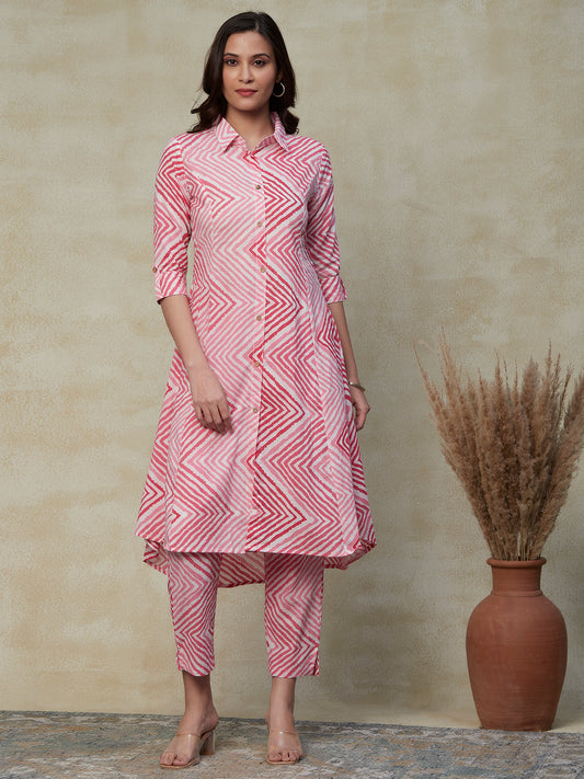 Chevron Printed Wooden Buttoned High-Low Hem Kurta...