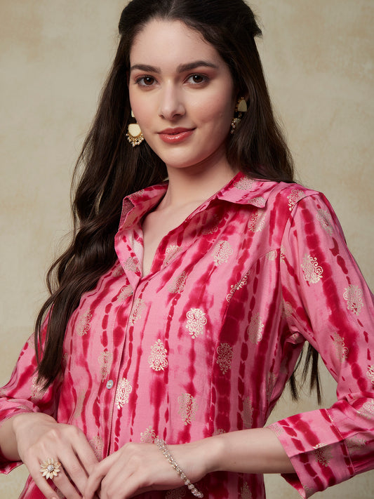 Abstract Printed & Ethnic Foil Printed Asymmetric...