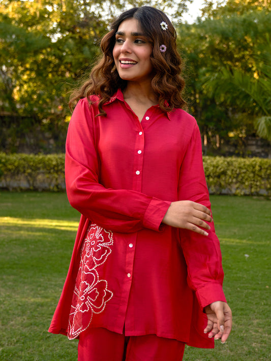 MRP (Inclusive of all taxes)Regular price ₹ 1,659.00₹ 1,659.00 Regular priceUnit price / per₹ 3,899.00Sale priceS M L XL 2XL 3XL 4XL 5XL 6XL add to cartSale{"id":6813835001942,"title":"Floral Printed Co-ord Set - Red","handle":"floral-printed-co-ord-set-red","description":"\u003cp data-mce-fragment=\"1\"\u003e\u003cspan style=\"font-weight: 400;\" data-mce-fragment=\"1\" data-mce-style=\"font-weight: 400;\"\u003e\u003c\/span\u003e\u003cspan style=\"font-weight: 400;\" data-mce-fragment=\"1\" data-mce-style=\"font-weight: 400;\"\u003eStyle: Kurta - Straight, Bottom - Pants\u003c\/span\u003e\u003c\/p\u003e\n\u003cp data-mce-fragment=\"1\"\u003e\u003cspan style=\"font-weight: 400;\" data-mce-fragment=\"1\" data-mce-style=\"font-weight: 400;\"\u003eType: Everyday Wear\/Office Wear \u003c\/span\u003e\u003c\/p\u003e\n\u003cp data-mce-fragment=\"1\"\u003e\u003cspan style=\"font-weight: 400;\" data-mce-fragment=\"1\" data-mce-style=\"font-weight: 400;\"\u003eNeckline: Collar Neckline\u003c\/span\u003e\u003c\/p\u003e\n\u003cp data-mce-fragment=\"1\"\u003e\u003cspan style=\"font-weight: 400;\" data-mce-fragment=\"1\" data-mce-style=\"font-weight: 400;\"\u003eSleeve Pattern: Cuff Sleeves\u003c\/span\u003e\u003c\/p\u003e\n\u003cp data-mce-fragment=\"1\"\u003e\u003cspan style=\"font-weight: 400;\" data-mce-fragment=\"1\" data-mce-style=\"font-weight: 400;\"\u003eSleeve Length: 3\/4th\u003c\/span\u003e\u003c\/p\u003e\n\u003cp data-mce-fragment=\"1\"\u003e\u003cspan style=\"font-weight: 400;\" data-mce-fragment=\"1\" data-mce-style=\"font-weight: 400;\"\u003eProduct Details:\u003c\/span\u003e\u003c\/p\u003e\n\u003cul data-mce-fragment=\"1\"\u003e\n\u003cli data-mce-fragment=\"1\"\u003e\u003cspan style=\"font-weight: 400;\" data-mce-fragment=\"1\" data-mce-style=\"font-weight: 400;\"\u003e Straight Fit Shirt \u003c\/span\u003e\u003c\/li\u003e\n\u003cli data-mce-fragment=\"1\"\u003e\u003cspan style=\"font-weight: 400;\" data-mce-fragment=\"1\" data-mce-style=\"font-weight: 400;\"\u003e Floral Prints all over\u003c\/span\u003e\u003c\/li\u003e\n\u003cli data-mce-fragment=\"1\"\u003e\u003cspan style=\"font-weight: 400;\" data-mce-fragment=\"1\" data-mce-style=\"font-weight: 400;\"\u003e Front Placket Detailing with \u003c\/span\u003e\u003c\/li\u003e\n\u003cli data-mce-fragment=\"1\"\u003e\u003cspan style=\"font-weight: 400;\" data-mce-fragment=\"1\" data-mce-style=\"font-weight: 400;\"\u003e Enhanced with Loops \u0026amp; Buttons Detailing\u003c\/span\u003e\u003c\/li\u003e\n\u003cli data-mce-fragment=\"1\"\u003e\u003cspan style=\"font-weight: 400;\" data-mce-fragment=\"1\" data-mce-style=\"font-weight: 400;\"\u003e Highlighted with Foil Prints \u003c\/span\u003e\u003c\/li\u003e\n\u003cli data-mce-fragment=\"1\"\u003e\u003cspan style=\"font-weight: 400;\" data-mce-fragment=\"1\" data-mce-style=\"font-weight: 400;\"\u003e Paired with Floral Printed Pants \u003c\/span\u003e\u003c\/li\u003e\n\u003cli data-mce-fragment=\"1\"\u003e\u003cspan style=\"font-weight: 400;\" data-mce-fragment=\"1\" data-mce-style=\"font-weight: 400;\"\u003e Enhanced with Foil Prints \u003c\/span\u003e\u003c\/li\u003e\n\u003cli data-mce-fragment=\"1\"\u003e\u003cspan style=\"font-weight: 400;\" data-mce-fragment=\"1\" data-mce-style=\"font-weight: 400;\"\u003e Partially Elasticated Waistline\u003c\/span\u003e\u003c\/li\u003e\n\u003cli data-mce-fragment=\"1\"\u003e\u003cspan style=\"font-weight: 400;\" data-mce-fragment=\"1\" data-mce-style=\"font-weight: 400;\"\u003e Drawstring Closure\u003c\/span\u003e\u003c\/li\u003e\n\u003c\/ul\u003e\n\u003cp data-mce-fragment=\"1\"\u003e\u003cspan style=\"font-weight: 400;\" data-mce-fragment=\"1\" data-mce-style=\"font-weight: 400;\"\u003eModel’s Height: 5’7” ft. Size: Wearing Size S \u003c\/span\u003e\u003c\/p\u003e\n\u003ch1 data-mce-fragment=\"1\"\u003e\u003cspan style=\"font-weight: 400;\" data-mce-fragment=\"1\" data-mce-style=\"font-weight: 400;\"\u003eFabric Details\u003c\/span\u003e\u003c\/h1\u003e\n\u003cp data-mce-fragment=\"1\"\u003e\u003cspan style=\"font-weight: 400;\" data-mce-fragment=\"1\" data-mce-style=\"font-weight: 400;\"\u003eFabric: Kurta - Muslin Silk, Bottom - Muslin Silk\u003c\/span\u003e\u003c\/p\u003e\n\u003cp data-mce-fragment=\"1\"\u003e\u003cspan style=\"font-weight: 400;\" data-mce-fragment=\"1\" data-mce-style=\"font-weight: 400;\"\u003eColour: Kurta - Red, Bottom - Red\u003c\/span\u003e\u003c\/p\u003e\n\u003cp data-mce-fragment=\"1\"\u003e\u003cspan style=\"font-weight: 400;\" data-mce-fragment=\"1\" data-mce-style=\"font-weight: 400;\"\u003eWash Care: Hand wash in cold water\u003c\/span\u003e\u003c\/p\u003e\n\u003ch1\u003eGarment Measurements\u003c\/h1\u003e\n\u003cp\u003e\u003cstrong\u003eMeasurement (in inches) \u003c\/strong\u003e\u003c\/p\u003e\n\u003cp\u003eLength – 29, Sleeves – 23,\u003c\/p\u003e\n\u003cp\u003eBottom - 39\u003c\/p\u003e\n\u003ch1 data-mce-fragment=\"1\"\u003e\u003cspan data-mce-fragment=\"1\"\u003eProduct Information\u003c\/span\u003e\u003c\/h1\u003e\n\u003cp data-mce-fragment=\"1\"\u003e\u003cspan data-mce-fragment=\"1\"\u003e\u003cstrong\u003eManufactured\/Packed\/Marketed By:\u003c\/strong\u003e\u003cbr\u003e\u003c\/span\u003e\u003cspan data-mce-fragment=\"1\"\u003eFashor Lifestyle Pvt. Ltd.\u003cbr\u003e28\/30, Sudershanpura Industrial Area,\u003cbr\u003eJaipur - 302006.\u003cbr\u003e\u003cstrong\u003eCountry of Origin:\u003c\/strong\u003e India\u003c\/span\u003e\u003c\/p\u003e","published_at":"2023-06-05T09:47:16+05:30","created_at":"2022-09-27T11:22:06+05:30","vendor":"Fashor","type":"","tags":["1000 - 2000","1001-2000","11849","All Styles","bogo-zone","bs","casualwear","co-ord","colour_red","fusion","ks","KURTI","kurtis","meta-size-chart-","monsoo","Products with discounts","Red","S","Sets under 2999","Silk","STRAIGHT","workwear"],"price":165900,"price_min":165900,"price_max":165900,"available":true,"price_varies":false,"compare_at_price":389900,"compare_at_price_min":389900,"compare_at_price_max":389900,"compare_at_pr