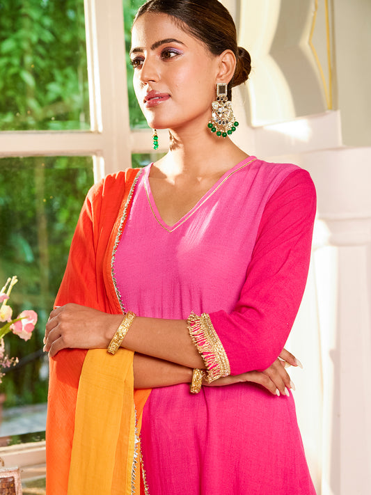 MRP (Inclusive of all taxes)Regular price ₹ 1,499.00₹ 1,499.00 Regular priceUnit price / per₹ 3,999.00Sale priceS M L XL 2XL 3XL 4XL 5XL 6XL add to cartSale{"id":6876025815126,"title":"Ombre Dyed \u0026 Gota Embroidered Straight Kurta with Pant with Dupatta - Pink","handle":"ombre-dyed-gota-embroidered-straight-kurta-with-pant-pink","description":"\u003ch1\u003eHighlights\u003c\/h1\u003e\n-Straight Fit Kurta\u003cbr data-mce-fragment=\"1\"\u003e-Ombre Dyed at Front\u003cbr data-mce-fragment=\"1\"\u003e-Gota \u0026amp; Zari Embroidered at Front\u003cbr data-mce-fragment=\"1\"\u003e-Comes with Ombre Dyed Pure Cotton Dupatta\u003cbr data-mce-fragment=\"1\"\u003e\u003cbr data-mce-fragment=\"1\"\u003e\n\u003ch1\u003eFabric \u0026amp; Colour\u003c\/h1\u003e\n\u003cp\u003eTop Colour: Pink\u003cbr data-mce-fragment=\"1\"\u003eTop Fabric: Rayon Flax\u003cbr data-mce-fragment=\"1\"\u003eBottom Colour: Off White\u003cbr data-mce-fragment=\"1\"\u003eBottom Fabric: Rayon Flax\u003cbr data-mce-fragment=\"1\"\u003eDupatta Colour: Multi\u003cbr data-mce-fragment=\"1\"\u003eDupatta Fabric: Pure Cotton\u003c\/p\u003e\n\u003ch1\u003eSpecifications\u003c\/h1\u003e\nTop Design: Solid\u003cbr data-mce-fragment=\"1\"\u003eTop Craft: Embroidery, Plain and Prints\u003cbr data-mce-fragment=\"1\"\u003eTop Shape: Straight\u003cbr data-mce-fragment=\"1\"\u003eNeck: V-Neck\u003cbr data-mce-fragment=\"1\"\u003eSleeve Length: Three-Quarter Sleeves\u003cbr data-mce-fragment=\"1\"\u003eTop Length: Knee Length\u003cbr data-mce-fragment=\"1\"\u003eHemline: Straight\u003cbr data-mce-fragment=\"1\"\u003eSlit: Side Slits\u003cbr data-mce-fragment=\"1\"\u003e\u003cbr data-mce-fragment=\"1\"\u003eBottom Type: Palazzos\u003cbr data-mce-fragment=\"1\"\u003eBottom Closure: Slip-On\u003cbr data-mce-fragment=\"1\"\u003eWaistband: Elasticated\u003cbr data-mce-fragment=\"1\"\u003e\u003cbr data-mce-fragment=\"1\"\u003eDupatta Pattern: Dyed\u003cbr data-mce-fragment=\"1\"\u003eDupatta Border: Taping\u003cbr data-mce-fragment=\"1\"\u003e\u003cbr data-mce-fragment=\"1\"\u003eWash Care: Dry Clean\u003cbr data-mce-fragment=\"1\"\u003e\u003cbr data-mce-fragment=\"1\"\u003eMeasurement (in inches)\u003cbr data-mce-fragment=\"1\"\u003eLength – 45, Sleeves – 16,\u003cbr data-mce-fragment=\"1\"\u003eBottom – 38\u003cbr data-mce-fragment=\"1\"\u003e\u003cbr data-mce-fragment=\"1\"\u003eModel’s Height: 5’7”. Wearing Size S.\u003cbr data-mce-fragment=\"1\"\u003e\n\u003ch1\u003eProduct Information\u003c\/h1\u003e\nManufactured\/Packed\/Marketed By:\u003cbr data-mce-fragment=\"1\"\u003eFashor Lifestyle Pvt. Ltd.\u003cbr data-mce-fragment=\"1\"\u003e28\/30, Sudarshanpura Industrial Area,\u003cbr data-mce-fragment=\"1\"\u003eJaipur - 302006.\u003cbr data-mce-fragment=\"1\"\u003eCountry of Origin: India","published_at":"2024-05-28T06:36:14+05:30","created_at":"2023-09-04T15:46:22+05:30","vendor":"Fashor","type":"3P Kurta Set","tags":["1001-2000","17627","3XL","bhaiduj","bogo-zone","bs","casualwear","colour_pink","embroidery","fabric_rayon","festivewear","laxmipuja","occasionwear","pink","plain-and-prints","rakhi","rayon-flax","Sets under 2999","solid","straight","taashparty","weddingwear"],"price":149900,"price_min":149900,"price_max":149900,"available":true,"price_varies":false,"compare_at_price":399900,"compare_at_price_min":399900,"compare_at_price_max":399900,"compare_at_price_varies":false,"variants":[{"id":41291824627798,"title":"S","option1":"S","option2":null,"option3":null,"sku":"36-ST017627F3FS","requires_shipping":true,"taxable":false,"featured_image":{"id":31575301292118,"product_id":6876025815126,"position":1,"created_at":"2023-09-04T15:46:46+05:30","updated_at":"2025-06-09T20:39:45+05:30","alt":null,"width":1080,"height":1440,"src":"\/\/fashor.com\/cdn\/shop\/files\/22496_2.jpg?v=1749481785","variant_ids":[41291824627798,41291824660566,41291824693334,41291824726102,41291824758870,41291824791638,41291824824406,41291824857174,41291824889942]},"available":false,"name":"Ombre Dyed \u0026 Gota Embroidered Straight Kurta with Pant with Dupatta - Pink - S","public_title":"S","options":["S"],"price":149900,"weight":0,"compare_at_price":399900,"inventory_quantity":0,"inventory_management":"shopify","inventory_policy":"deny","barcode":null,"featured_media":{"alt":null,"id":24288870432854,"position":1,"preview_image":{"aspect_ratio":0.75,"height":1440,"width":1080,"src":"\/\/fashor.com\/cdn\/shop\/files\/22496_2.jpg?v=1749481785"}},"requires_selling_plan":false,"selling_plan_allocations":[],"quantity_rule":{"min":1,"max":null,"increment":1}},{"id":41291824660566,"title":"M","option1":"M","option2":null,"option3":null,"sku":"38-ST017627F3FS","requires_shipping":true,"taxable":false,"featured_image":{"id":31575301292118,"product_id":6876025815126,"position":1,"created_at":"2023-09-04T15:46:46+05:30","updated_at":"2025-06-09T20:39:45+05:30","alt":null,"width":1080,"height":1440,"src":"\/\/fashor.com\/cdn\/shop\/files\/22496_2.jpg?v=1749481785","variant_ids":[41291824627798,41291824660566,41291824693334,41291824726102,41291824758870,41291824791638,41291824824406,41291824857174,41291824889942]},"available":false,"name":"Ombre Dyed \u0026 Gota Embroidered Straight Kurta with Pant with Dupatta - Pink - M","public_title":"M","options":["M"],"price":149900,"weight":0,"compare_at_price":399900,"inventory_quantity":0,"inventory_management":"shopify","inventory_policy":"deny","barcode":null,"featured_media":{"alt":null,"id":24288870432854,"position":1,"preview_image":{"aspect_ratio":0.75,"height":1440,"width":1080,"src":"\/\/fashor.com\/cdn\/shop\/files\/22496_2.jpg?v=1749481785"}},"requires_selling_plan":false,"selling_plan_allocations":[],"quantity_rule":{"min":1,"max":null,"increment":1}},{"id":41291824693334,"title":"L","option1":"L","option2":null,"option3":null,"sku":"40-ST017627F3FS","requires_shipping":true,"taxable":false,"featured_image":{"id":31575301292118,"product_id":6876025815126,"position":1,"created_at":"2023-09-04T15:46:46+05:3