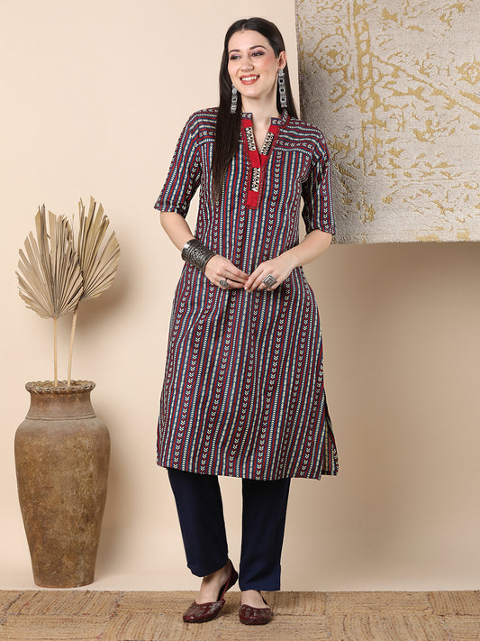 Ethnic Stripes Printed Straight Fit Kurta -...