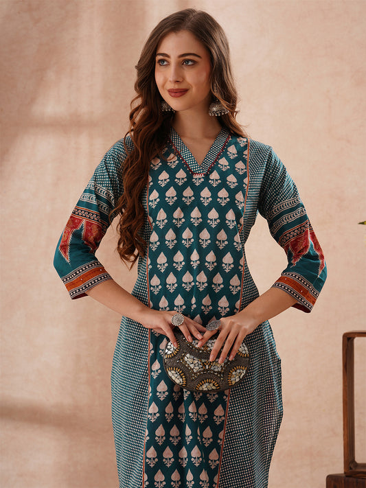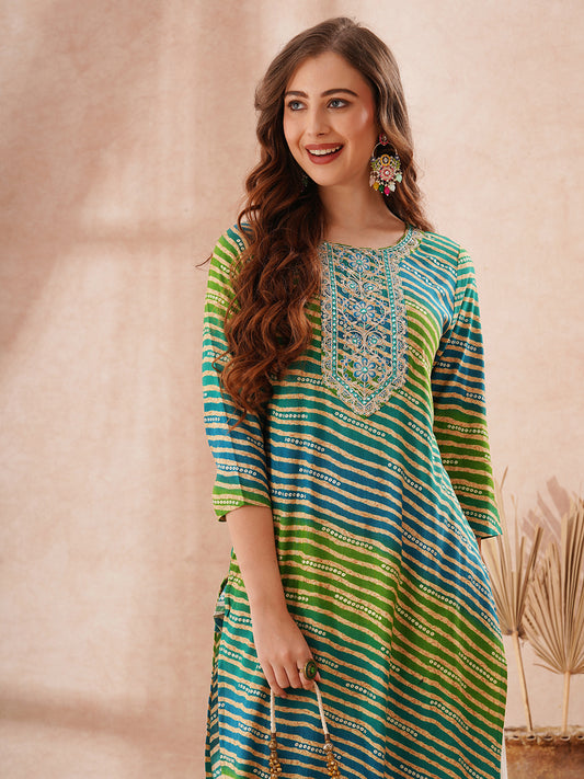 Leheriya Printed & Embroidered Straight Fit Kurta...