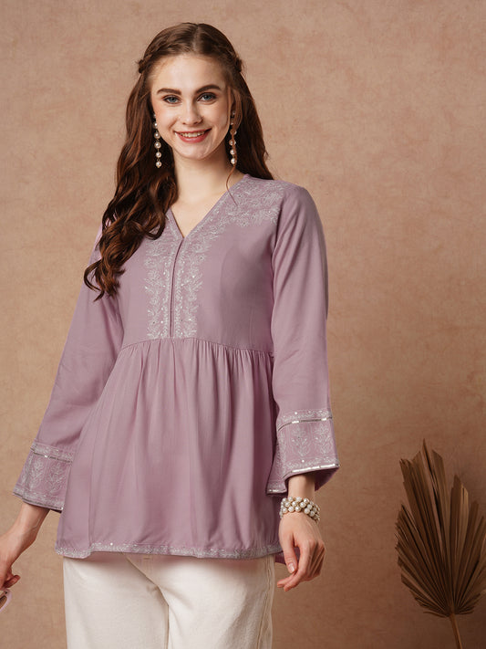 Floral Printed Mirror, Resham, Sequins & Zari...