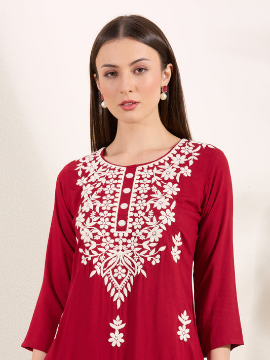 MRP (Inclusive of all taxes)Regular price ₹ 1,049.00₹ 1,049.00 Regular priceUnit price / per₹ 2,699.00Sale priceM L XL 2XL add to cartSale{"id":7623671742550,"title":"Solid Floral Embroidered Straight Fit Kurta - Red","handle":"solid-floral-embroidered-straight-fit-kurta-red-2","description":"\u003ch1\u003eHighlights\u003c\/h1\u003e\n\u003cp\u003e\u003cbr\u003e\u003cbr\u003e-Radiate effortless charm in this elegant Solid Floral Embroidered Kurta. Crafted from soft viscose rayon, this straight-fit silhouette features a classic round neckline and a beautifully detailed Chikankari-inspired embroidered yoke. The rich red hue and delicate floral motifs bring a perfect blend of tradition and modern grace—ideal for both casual days and festive evenings.\u003c\/p\u003e\n\u003ch1\u003e\n\u003cbr\u003eFabric \u0026amp; Colour\u003c\/h1\u003e\n\u003cp\u003e\u003cbr\u003eColour: Red\u003cbr\u003eFabric: Viscose Rayon\u003c\/p\u003e\n\u003ch1\u003eSpecifications\u003c\/h1\u003e\n\u003cp\u003e\u003cbr\u003eDesign: Solid\u003cbr\u003eCraft: Embroidery, Plain and Prints\u003cbr\u003eShape: Straight\u003cbr\u003eNeck: Round Neck\u003cbr\u003eSleeve Length: Three-Quarter Sleeves\u003cbr\u003eTop Length: Knee Length\u003cbr\u003eHemline: Straight\u003cbr\u003eSlit: Side Slits\u003c\/p\u003e\n\u003cp\u003eWash Care: Hand Wash\u003c\/p\u003e\n\u003cp\u003eLength (in inches)\u003cbr\u003eKurta – 43, Sleeves – 17\u003c\/p\u003e\n\u003cp\u003eModel’s Height: 5’7”. Wearing Size S.\u003c\/p\u003e\n\u003ch1\u003eProduct Information\u003c\/h1\u003e\n\u003cp\u003e\u003cbr\u003eManufactured\/Packed\/Marketed By:\u003cbr\u003eFashor Lifestyle Pvt. Ltd.\u003cbr\u003e28\/30, Sudarshanpura Industrial Area,\u003cbr\u003eJaipur - 302006.\u003cbr\u003eCountry of Origin: India\u003c\/p\u003e","published_at":"2025-08-26T11:59:48+05:30","created_at":"2025-08-26T07:24:58+05:30","vendor":"FASHOR","type":"Kurtas","tags":["1001-2000","31282","All Styles","casualwear","colour_red","craft_embroidery","craft_plain-and-prints","design_solid","fabric_viscose-rayon","KURTI","kurtis","L","M","meta-size-chart-","now-trending","shape_straight","single-kurta","workwear"],"price":104900,"price_min":104900,"price_max":104900,"available":true,"price_varies":false,"compare_at_price":269900,"compare_at_price_min":269900,"compare_at_price_max":269900,"compare_at_price_varies":false,"variants":[{"id":42806598303830,"title":"M","option1":"M","option2":null,"option3":null,"sku":"38-KAB31282F5FS","requires_shipping":true,"taxable":false,"featured_image":{"id":34996610596950,"product_id":7623671742550,"position":4,"created_at":"2025-08-26T07:24:47+05:30","updated_at":"2025-08-26T07:24:49+05:30","alt":null,"width":1080,"height":1440,"src":"\/\/fashor.com\/cdn\/shop\/files\/31876_3.jpg?v=1756173289","variant_ids":[42806598303830,42806598336598,42806598369366,42806598402134]},"available":true,"name":"Solid Floral Embroidered Straight Fit Kurta - Red - M","public_title":"M","options":["M"],"price":104900,"weight":0,"compare_at_price":269900,"inventory_quantity":1,"inventory_management":"shopify","inventory_policy":"deny","barcode":"","featured_media":{"alt":null,"id":27125849948246,"position":4,"preview_image":{"aspect_ratio":0.75,"height":1440,"width":1080,"src":"\/\/fashor.com\/cdn\/shop\/files\/31876_3.jpg?v=1756173289"}},"requires_selling_plan":false,"selling_plan_allocations":[],"quantity_rule":{"min":1,"max":null,"increment":1}},{"id":42806598336598,"title":"L","option1":"L","option2":null,"option3":null,"sku":"40-KAB31282F5FS","requires_shipping":true,"taxable":false,"featured_image":{"id":34996610596950,"product_id":7623671742550,"position":4,"created_at":"2025-08-26T07:24:47+05:30","updated_at":"2025-08-26T07:24:49+05:30","alt":null,"width":1080,"height":1440,"src":"\/\/fashor.com\/cdn\/shop\/files\/31876_3.jpg?v=1756173289","variant_ids":[42806598303830,42806598336598,42806598369366,42806598402134]},"available":true,"name":"Solid Floral Embroidered Straight Fit Kurta - Red - L","public_title":"L","options":["L"],"price":104900,"weight":0,"compare_at_price":269900,"inventory_quantity":3,"inventory_management":"shopify","inventory_policy":"deny","barcode":"","featured_media":{"alt":null,"id":27125849948246,"position":4,"preview_image":{"aspect_ratio":0.75,"height":1440,"width":1080,"src":"\/\/fashor.com\/cdn\/shop\/files\/31876_3.jpg?v=1756173289"}},"requires_selling_plan":false,"selling_plan_allocations":[],"quantity_rule":{"min":1,"max":null,"increment":1}},{"id":42806598369366,"title":"XL","option1":"XL","option2":null,"option3":null,"sku":"42-KAB31282F5FS","requires_shipping":true,"taxable":false,"featured_image":{"id":34996610596950,"product_id":7623671742550,"position":4,"created_at":"2025-08-26T07:24:47+05:30","updated_at":"2025-08-26T07:24:49+05:30","alt":null,"width":1080,"height":1440,"src":"\/\/fashor.com\/cdn\/shop\/files\/31876_3.jpg?v=1756173289","variant_ids":[42806598303830,42806598336598,42806598369366,42806598402134]},"available":false,"name":"Solid Floral Embroidered Straight Fit Kurta - Red - XL","public_title":"XL","options":["XL"],"price":104900,"weight":0,"compare_at_price":269900,"inventory_quantity":0,"inventory_management":"shopify","inventory_policy":"deny","barcode":"","featured_media":{"alt":null,"id":27125849948246,"position":4,"preview_image":{"aspect_ratio":0.75,"height":1440,"width":1080,"src":"\/\/fashor.com\/cdn\/shop\/files\/31876_3.jpg?v=1756173289"}},"requires_selling_plan":false,"selling_plan_allocations":[],"quantity_rule":{"min":1,"max":null,"increment":1}},{"id":42806598402134,"title":"2XL","option1":"2XL","option2":null,"option3":null,"sku":"44-KAB31282F5FS","requires_shipping":true,"taxable":false,"featured_image":{"id":34996610596950,"product_id":7623671742550,"position":4,"created_at":"2025-08-26T07:24:47+05:30","updated_at":"2025-08-26T07:24:49+05:30","alt":null,"width":1080,"height":1440,"src":"\/\/fashor.com\/cdn\/shop\/files\/31876_3.jpg?v=1756173289","variant_ids":[42806598303830