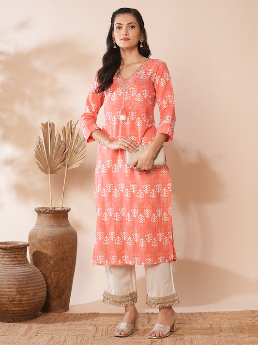 Ethnic Printed & Embroidered Straight Fit Kurta...