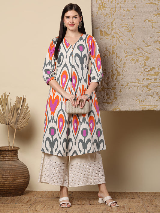 Abstract Ikat Printed A-Line Flared Kurta -...