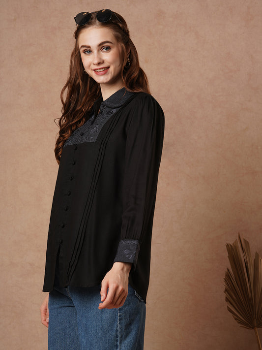 Solid Floral Resham Embroidered Straight Fit Short...