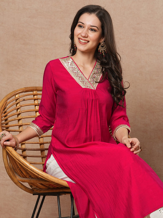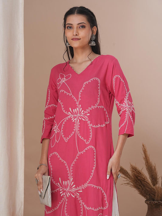 Ethnic Embroidered Straight Fit Kurta - Pink