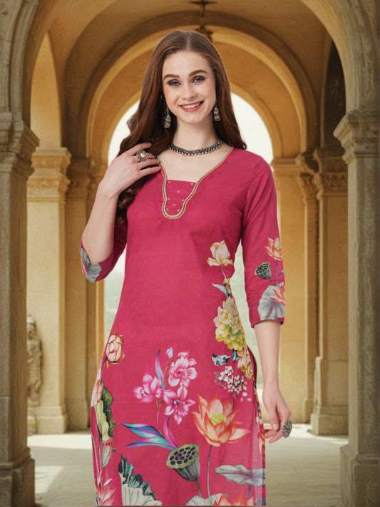 Lotus Printed & Embroidered Straight Fit Kurta...