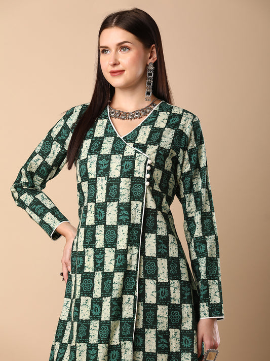 Ethnic Geometric Printed A-Line Angrakha Style Flared...