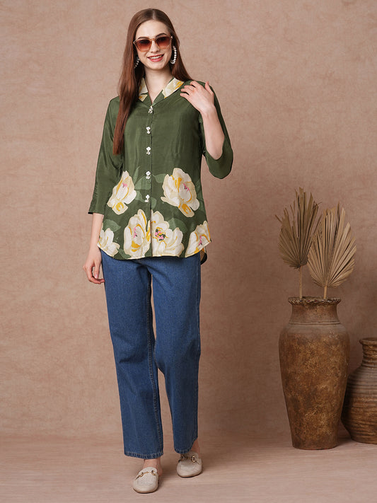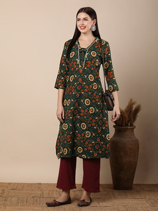 Ethnic Floral Printed A-Line Flared Kurta -...