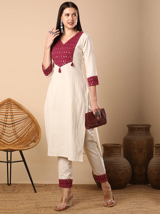 Solid Ethnic Mirror Embroidered Straight Fit Co-ord...