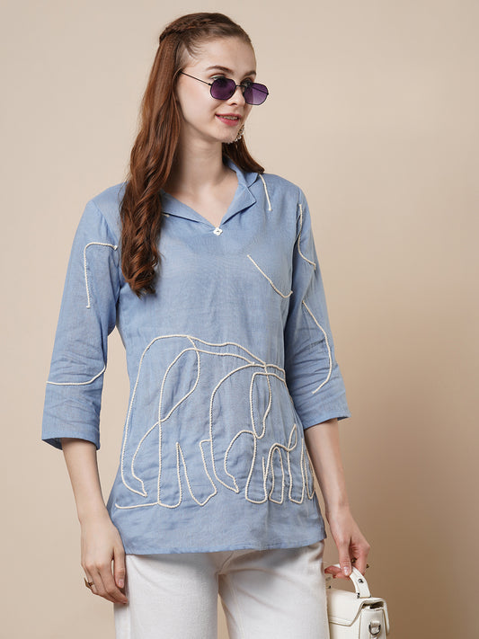 Solid Ethnic Floral Threadwork Embroidered Kurta with...