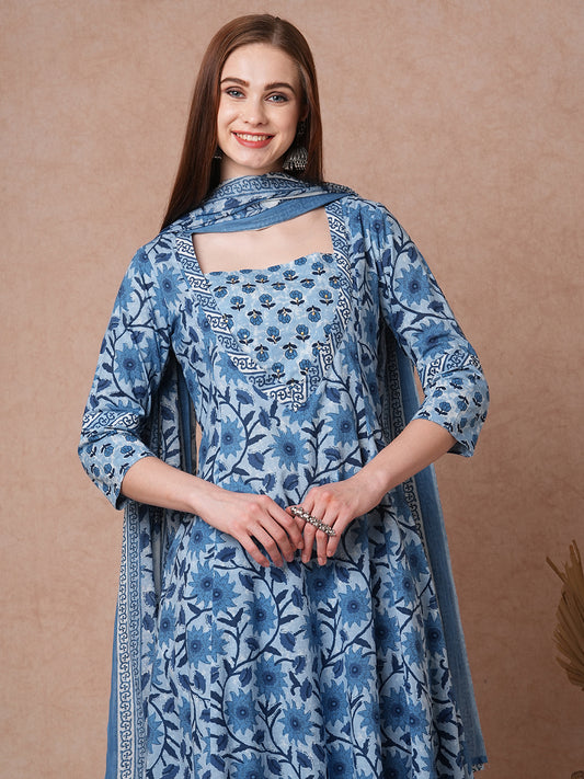 Ethnic Floral Printed Anarkali Flared Kurta with...