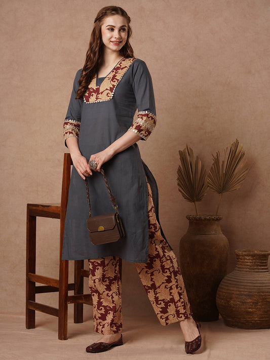 Ethnic Floral Printed A-Line Kurta with Palazzo...
