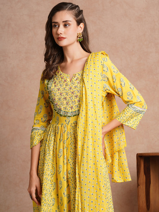 Ethnic Floral Printed & Hand Embroidered Anarkali...