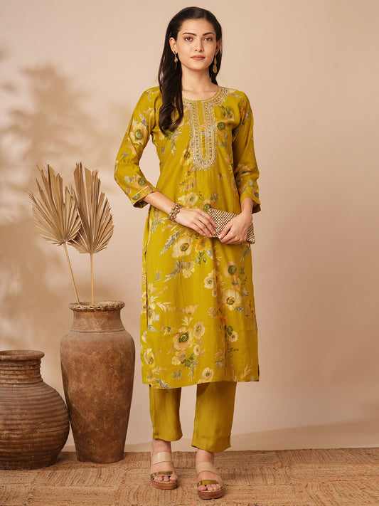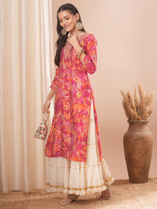 Ethnic Floral Printed Straight Fit Kurta with...