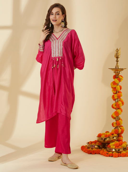 Solid Embroidered Kaftan Style Kurta with Pant...