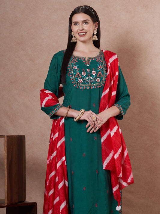 Bandhani Printed Hand Embroidered Straight Kurta with...