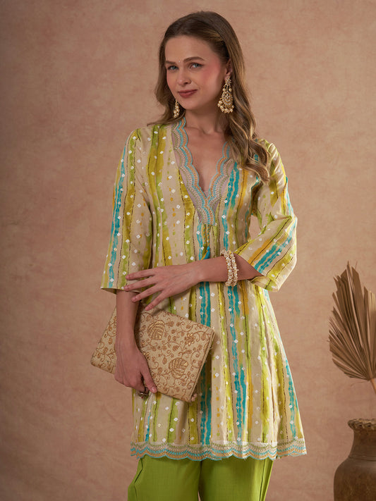 Ethnic Foil Stripes Printed A-Line Paneled Kurta...