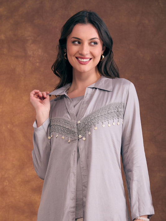MRP (Inclusive of all taxes)Regular price ₹ 2,599.00₹ 2,599.00 Regular priceUnit price / per₹ 7,499.00Sale priceM L XL 2XL add to cartSale{"id":7612307832918,"title":"Solid A-Line Flared Kurta with Floral Printed Palazzo - Grey","handle":"solid-a-line-flared-kurta-with-floral-printed-palazzo-grey","description":"\u003ch1\u003eHighlights\u003cbr\u003e\n\u003c\/h1\u003e\n\u003cp\u003e\u003cbr\u003e-Add a touch of charm to your wardrobe with this Solid A-Line Flared Kurta Set in soft Grey. Crafted from flowy viscose rayon, the kurta features a smart shirt collar and delicate crochet lace detailing at the yoke for a hint of elegance. Paired with a breezy floral printed palazzo, this set is perfect for casual outings or daytime festivities with a blend of comfort and style.\u003c\/p\u003e\n\u003ch1\u003e\n\u003cbr\u003eFabric \u0026amp; Colour\u003c\/h1\u003e\n\u003cp\u003e\u003cbr\u003eTop Colour: Grey\u003cbr\u003eTop Fabric: Viscose Rayon\u003cbr\u003eBottom Colour: Grey\u003cbr\u003eBottom Fabric: Viscose Rayon\u003c\/p\u003e\n\u003ch1\u003eSpecifications\u003c\/h1\u003e\n\u003cp\u003e\u003cbr\u003eTop Design: Solid\u003cbr\u003eTop Craft: Plain and Prints\u003cbr\u003eTop Shape: A-line\u003cbr\u003eNeck: Shirt Collar\u003cbr\u003eSleeve Length: Long Sleeves\u003cbr\u003eTop Length: Calf Length\u003cbr\u003eHemline: Flared\u003cbr\u003e\u003c\/p\u003e\n\u003cp\u003eBottom Type: Palazzos\u003cbr\u003eBottom Closure: Slip-On\u003cbr\u003eWaistband: Partially Elasticated\u003c\/p\u003e\n\u003cp\u003eWash Care: Hand Wash\u003c\/p\u003e\n\u003cp\u003eLength (in inches)\u003cbr\u003eKurta – 47, Sleeveless,\u003cbr\u003eBottom - 38\u003c\/p\u003e\n\u003cp\u003eModel’s Height: 5’7”. Wearing Size S.\u003c\/p\u003e\n\u003ch1\u003eProduct Information\u003c\/h1\u003e\n\u003cp\u003e\u003cbr\u003eManufactured\/Packed\/Marketed By:\u003cbr\u003eFashor Lifestyle Pvt. Ltd.\u003cbr\u003e28\/30, Sudarshanpura Industrial Area,\u003cbr\u003eJaipur - 302006.\u003cbr\u003eCountry of Origin: India\u003c\/p\u003e","published_at":"2025-08-09T13:17:23+05:30","created_at":"2025-08-08T14:45:28+05:30","vendor":"FASHOR","type":"2P Kurta Set","tags":["2001-3000","2XL","31496","All Styles","casualwear","colour_grey","craft_plain-and-prints","design_solid","fabric_viscose-rayon","KURTI","kurtis","L","M","meta-size-chart-","now-trending","shape_a-line","workwear","XL"],"price":259900,"price_min":259900,"price_max":259900,"available":true,"price_varies":false,"compare_at_price":749900,"compare_at_price_min":749900,"compare_at_price_max":749900,"compare_at_price_varies":false,"variants":[{"id":42559622774870,"title":"M","option1":"M","option2":null,"option3":null,"sku":"38-KBA31496F5FS","requires_shipping":true,"taxable":false,"featured_image":{"id":34888778580054,"product_id":7612307832918,"position":5,"created_at":"2025-08-08T14:46:20+05:30","updated_at":"2025-08-08T14:47:01+05:30","alt":null,"width":1080,"height":1440,"src":"\/\/fashor.com\/cdn\/shop\/files\/31784_6.jpg?v=1754644621","variant_ids":[42559622774870,42559622807638,42559622840406,42559622873174]},"available":true,"name":"Solid A-Line Flared Kurta with Floral Printed Palazzo - Grey - M","public_title":"M","options":["M"],"price":259900,"weight":0,"compare_at_price":749900,"inventory_quantity":3,"inventory_management":"shopify","inventory_policy":"deny","barcode":"","featured_media":{"alt":null,"id":27055792652374,"position":5,"preview_image":{"aspect_ratio":0.75,"height":1440,"width":1080,"src":"\/\/fashor.com\/cdn\/shop\/files\/31784_6.jpg?v=1754644621"}},"requires_selling_plan":false,"selling_plan_allocations":[],"quantity_rule":{"min":1,"max":null,"increment":1}},{"id":42559622807638,"title":"L","option1":"L","option2":null,"option3":null,"sku":"40-KBA31496F5FS","requires_shipping":true,"taxable":false,"featured_image":{"id":34888778580054,"product_id":7612307832918,"position":5,"created_at":"2025-08-08T14:46:20+05:30","updated_at":"2025-08-08T14:47:01+05:30","alt":null,"width":1080,"height":1440,"src":"\/\/fashor.com\/cdn\/shop\/files\/31784_6.jpg?v=1754644621","variant_ids":[42559622774870,42559622807638,42559622840406,42559622873174]},"available":true,"name":"Solid A-Line Flared Kurta with Floral Printed Palazzo - Grey - L","public_title":"L","options":["L"],"price":259900,"weight":0,"compare_at_price":749900,"inventory_quantity":1,"inventory_management":"shopify","inventory_policy":"deny","barcode":"","featured_media":{"alt":null,"id":27055792652374,"position":5,"preview_image":{"aspect_ratio":0.75,"height":1440,"width":1080,"src":"\/\/fashor.com\/cdn\/shop\/files\/31784_6.jpg?v=1754644621"}},"requires_selling_plan":false,"selling_plan_allocations":[],"quantity_rule":{"min":1,"max":null,"increment":1}},{"id":42559622840406,"title":"XL","option1":"XL","option2":null,"option3":null,"sku":"42-KBA31496F5FS","requires_shipping":true,"taxable":false,"featured_image":{"id":34888778580054,"product_id":7612307832918,"position":5,"created_at":"2025-08-08T14:46:20+05:30","updated_at":"2025-08-08T14:47:01+05:30","alt":null,"width":1080,"height":1440,"src":"\/\/fashor.com\/cdn\/shop\/files\/31784_6.jpg?v=1754644621","variant_ids":[42559622774870,42559622807638,42559622840406,42559622873174]},"available":true,"name":"Solid A-Line Flared Kurta with Floral Printed Palazzo - Grey - XL","public_title":"XL","options":["XL"],"price":259900,"weight":0,"compare_at_price":749900,"inventory_quantity":3,"inventory_management":"shopify","inventory_policy":"deny","barcode":"","featured_media":{"alt":null,"id":27055792652374,"position":5,"preview_image":{"aspect_ratio":0.75,"height":1440,"width":1080,"src":"\/\/fashor.com\/cdn\/shop\/files\/31784_6.jpg?v=1754644621"}},"requires_selling_plan":false,"selling_plan_allocations":[],"quantity_rule":{"min":1,"max":null,"increment":1}},{"id":42559622873174,"title":"2XL","option1":"2XL","option2":null,"option3":null,"sku":"44-KBA31496F5FS","requires_shipping":true,"taxable":false,"featured_image":{"id":34888778580054,"product