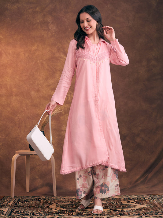 Solid Ethnic Embroidered Straight Fit Kurta with...